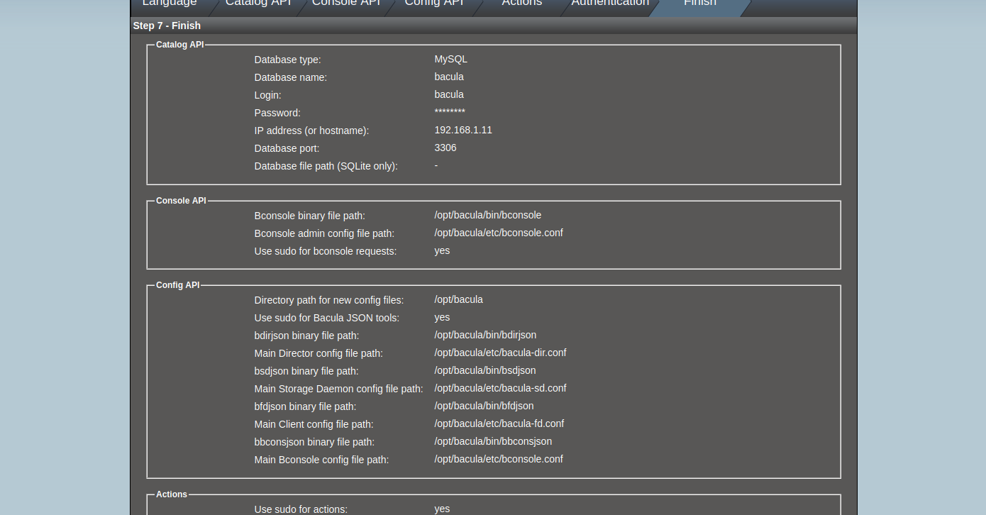 MariaDB [(none)]> exit Bye2.5 配置Bacula Server