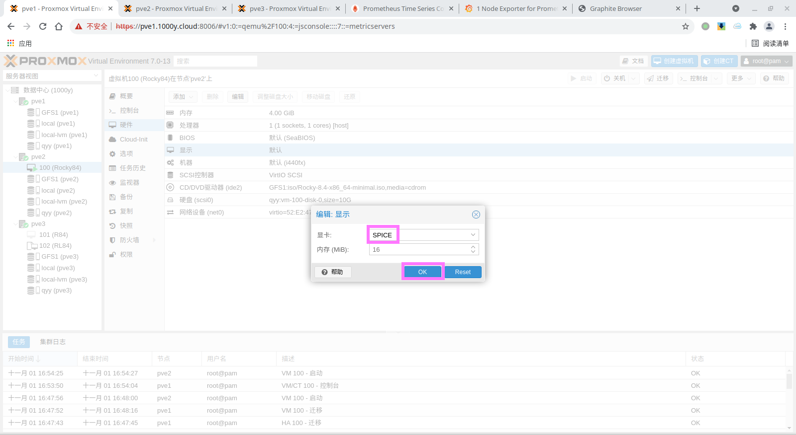root@pve3:~# vi /etc/prometheus/pve.yml default: user: root@pam password: 123456 # 你的pve的管理密码 verify_ssl: false