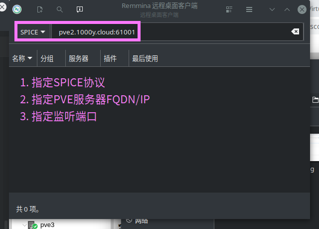 1) 开启SPICE 1. 关闭虚拟主机 2. 将虚拟主机设置为SPICE协议 |