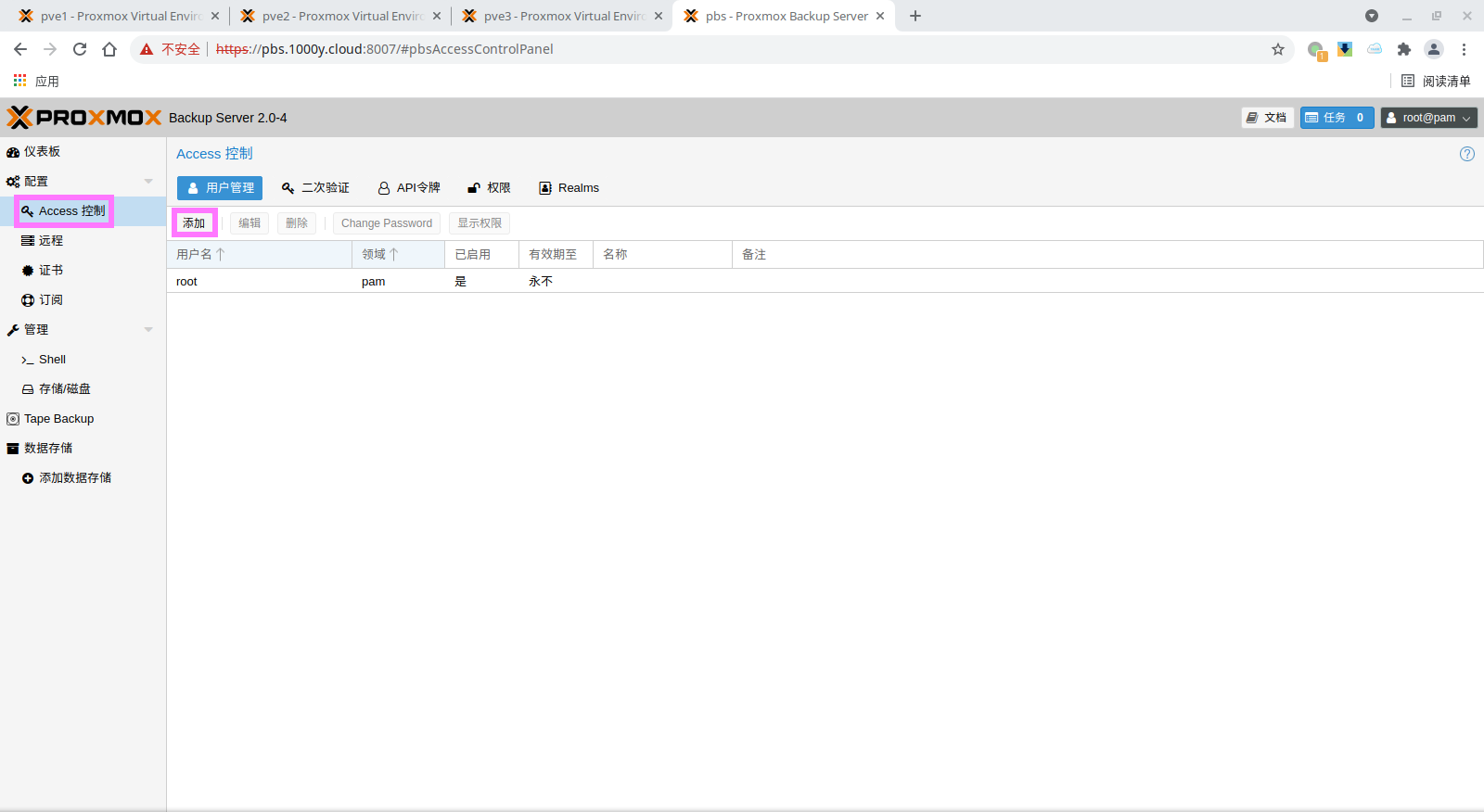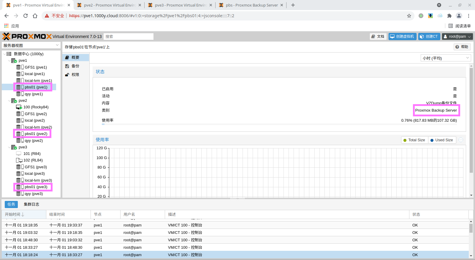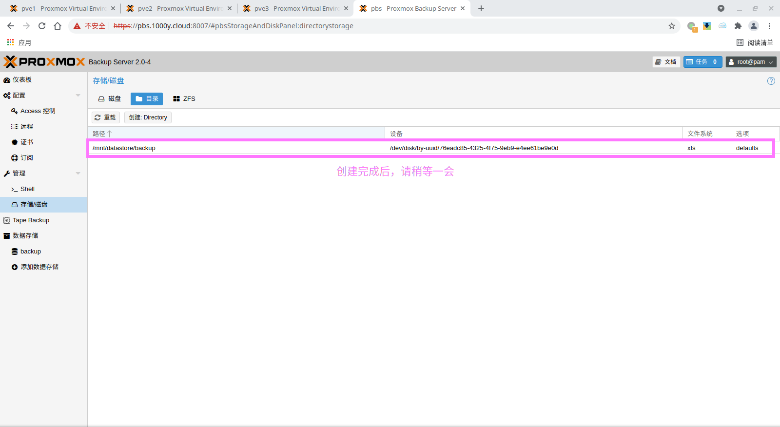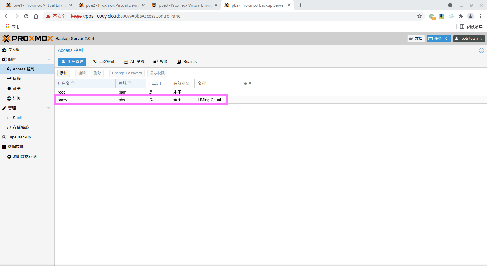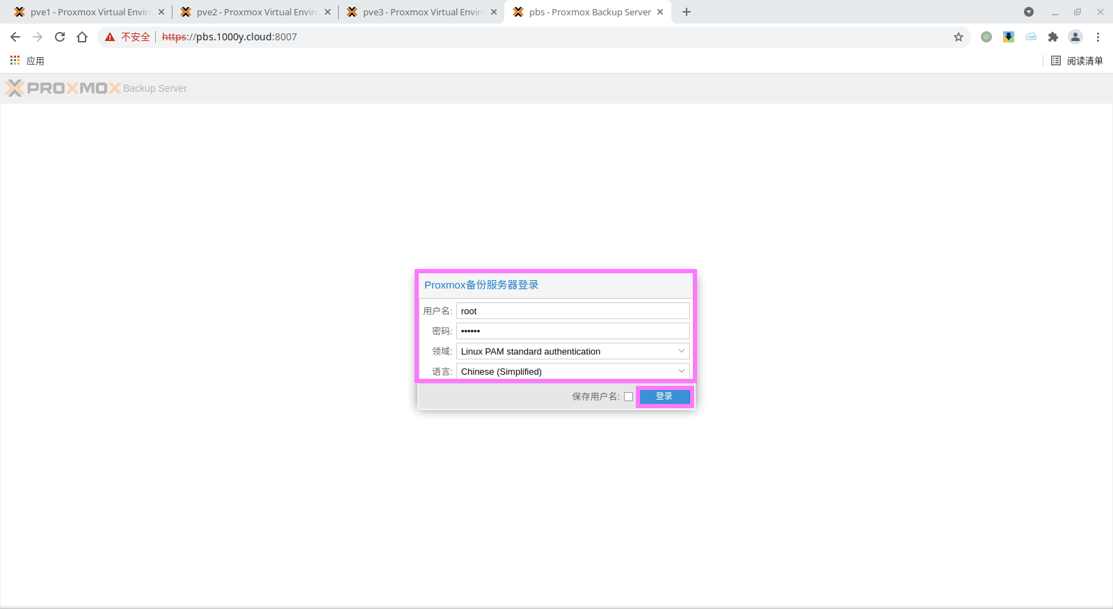 5) 登录PBS [浏览器]===>https://pbs-srv-ip:8007
