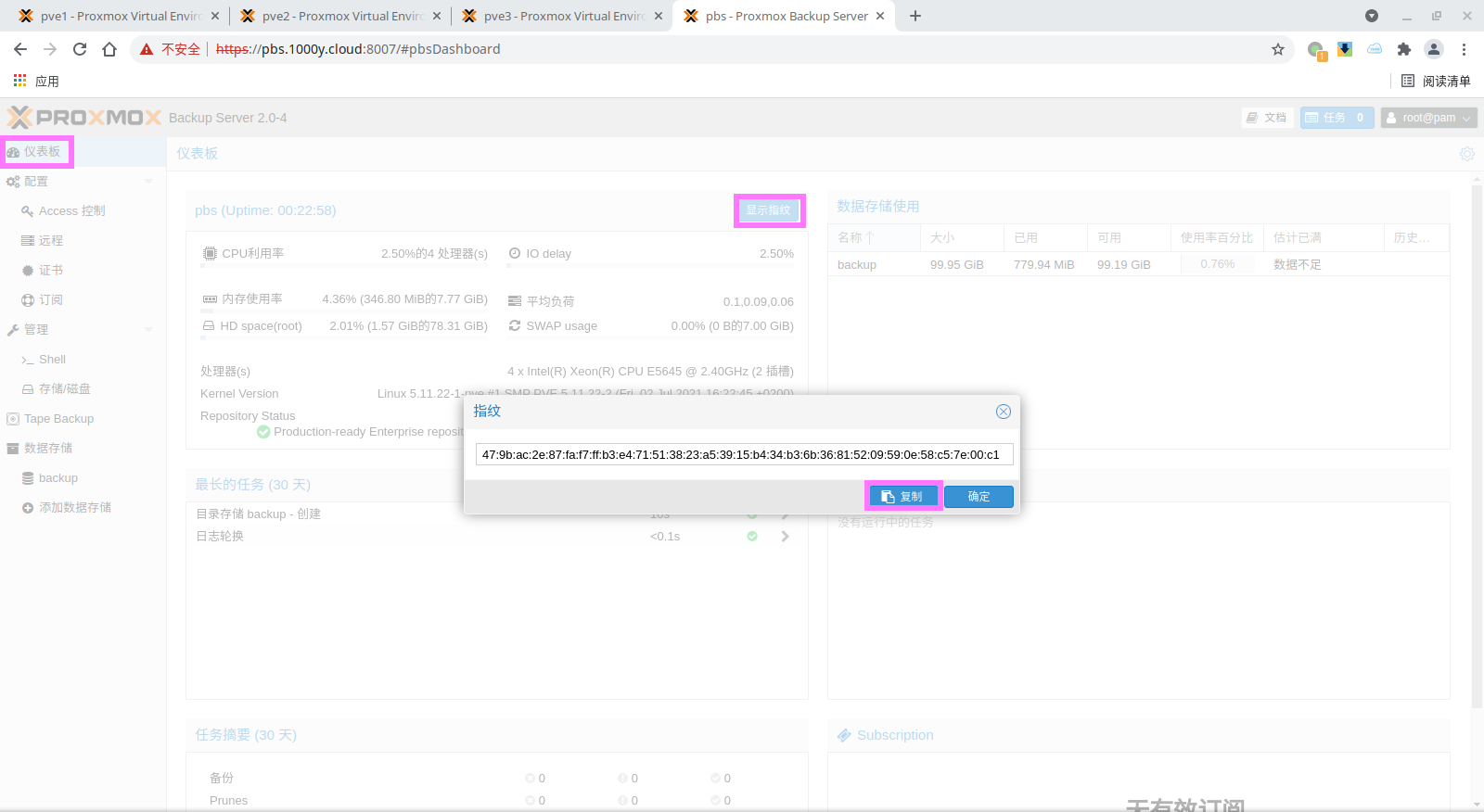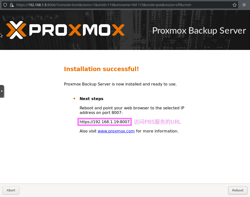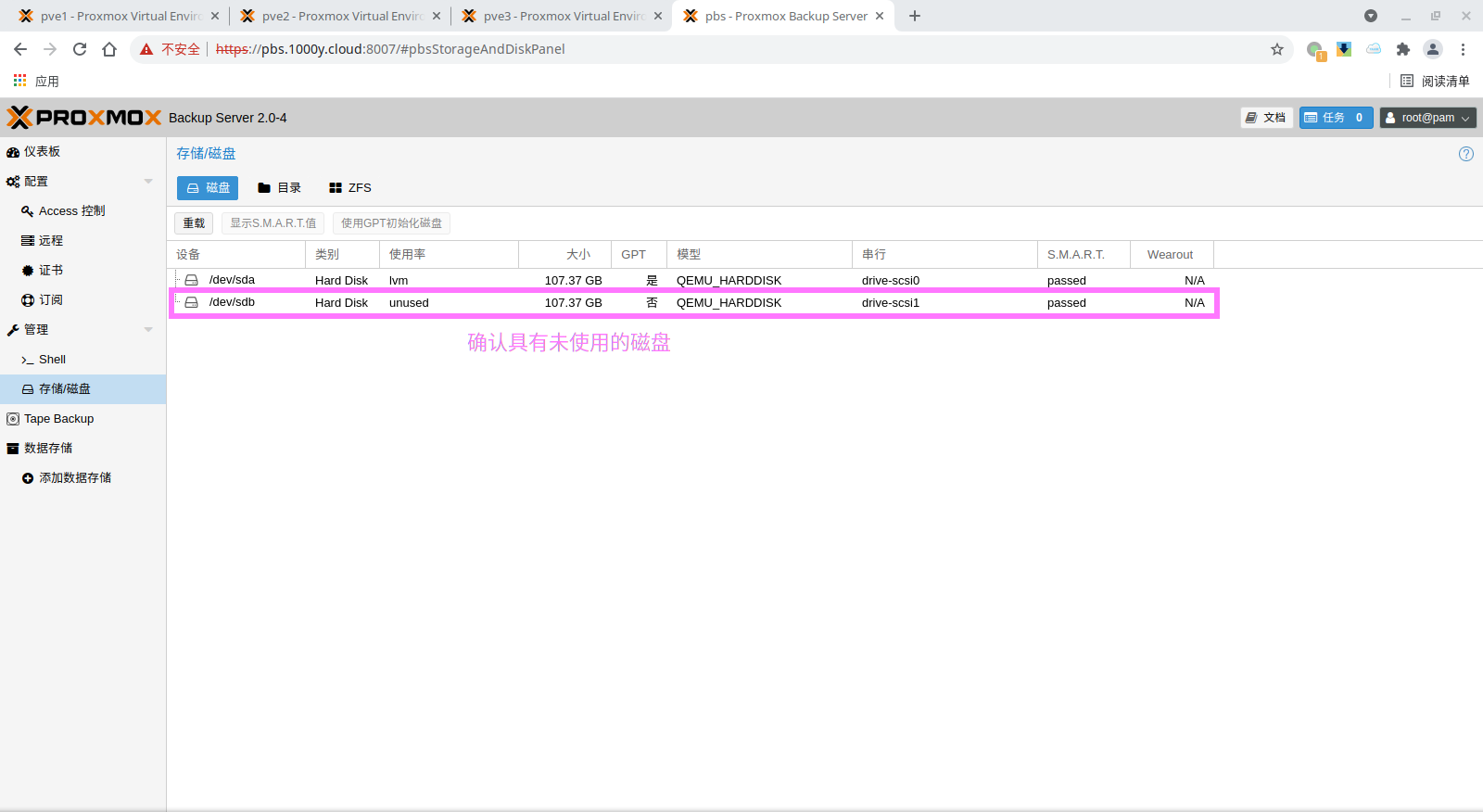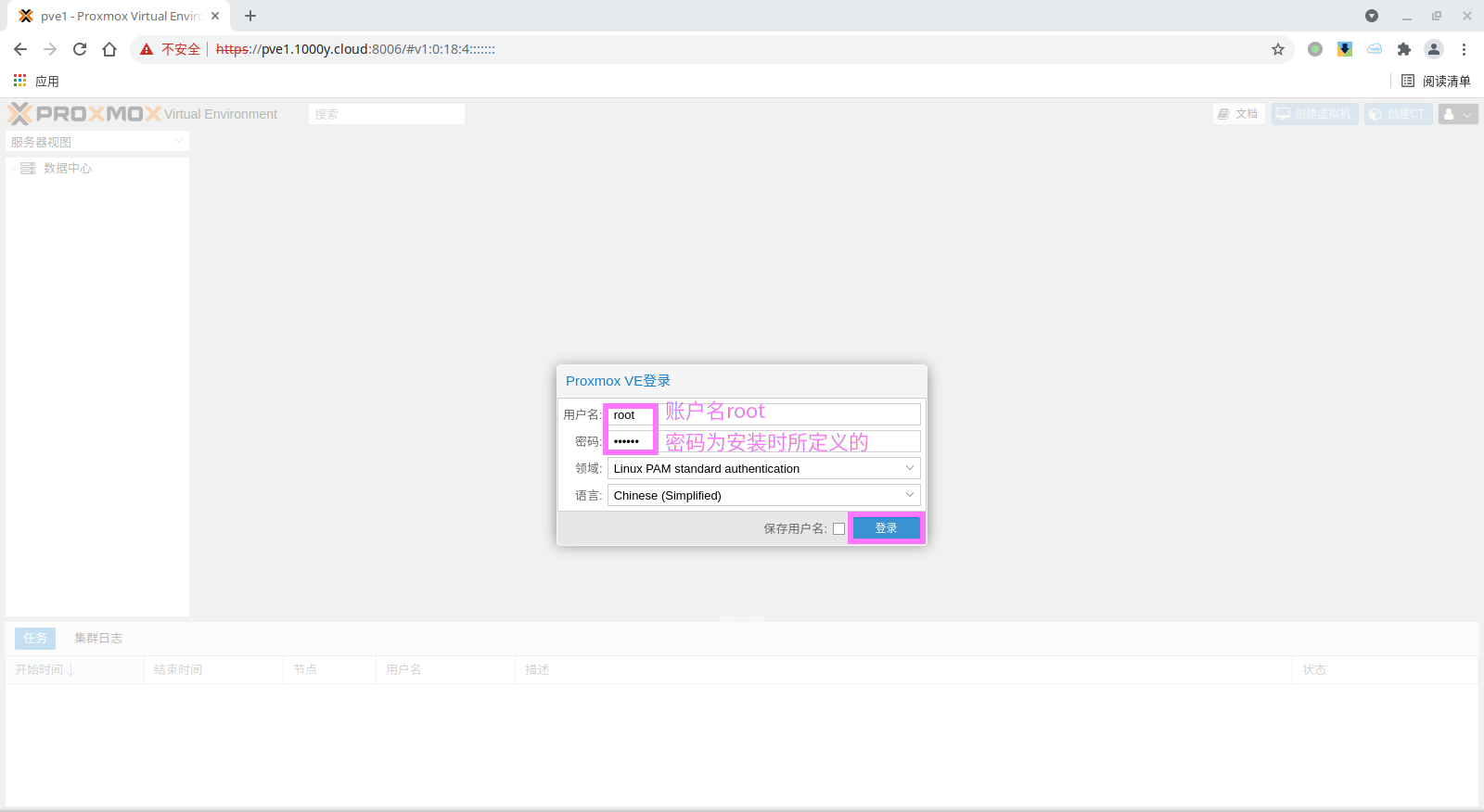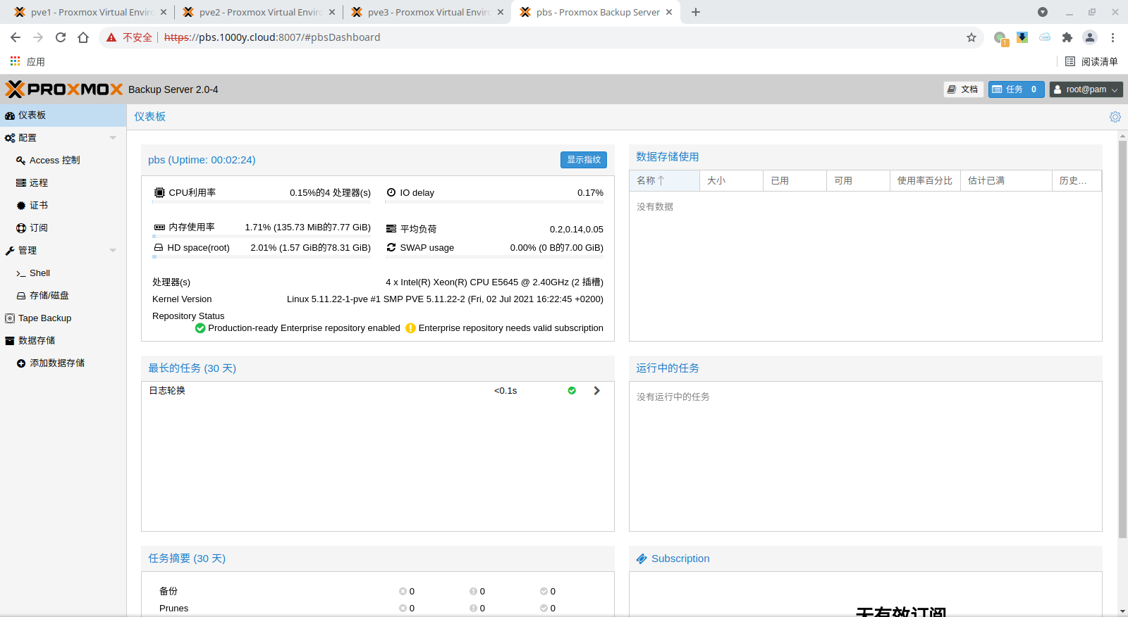 5) 登录PBS [浏览器]===>https://pbs-srv-ip:8007