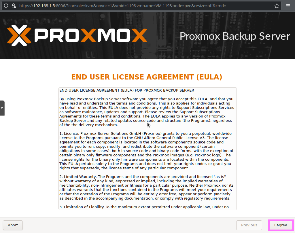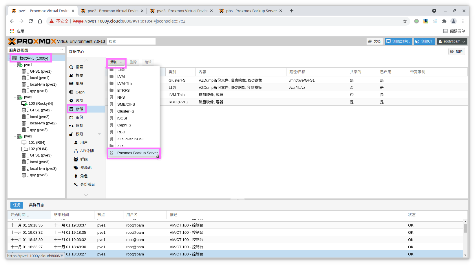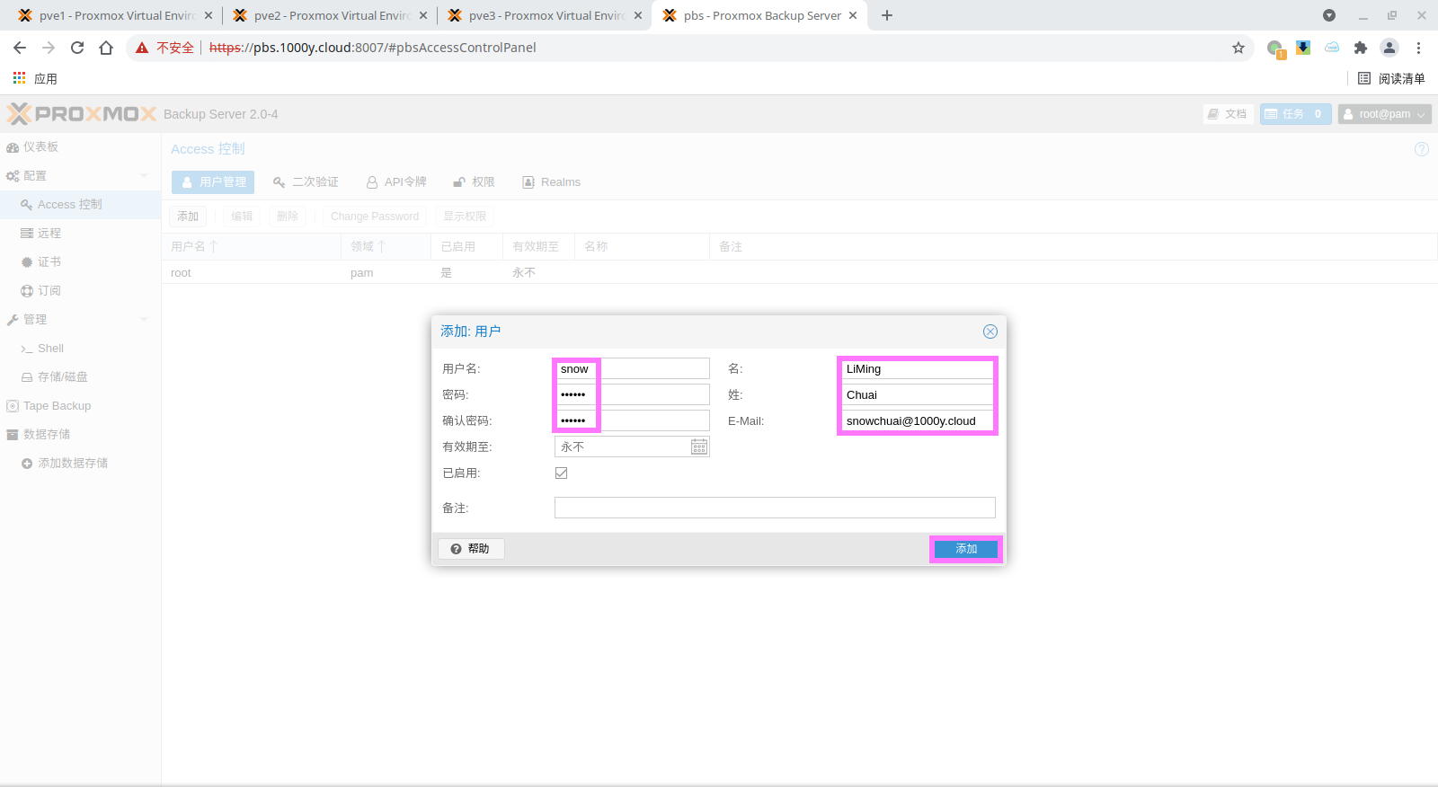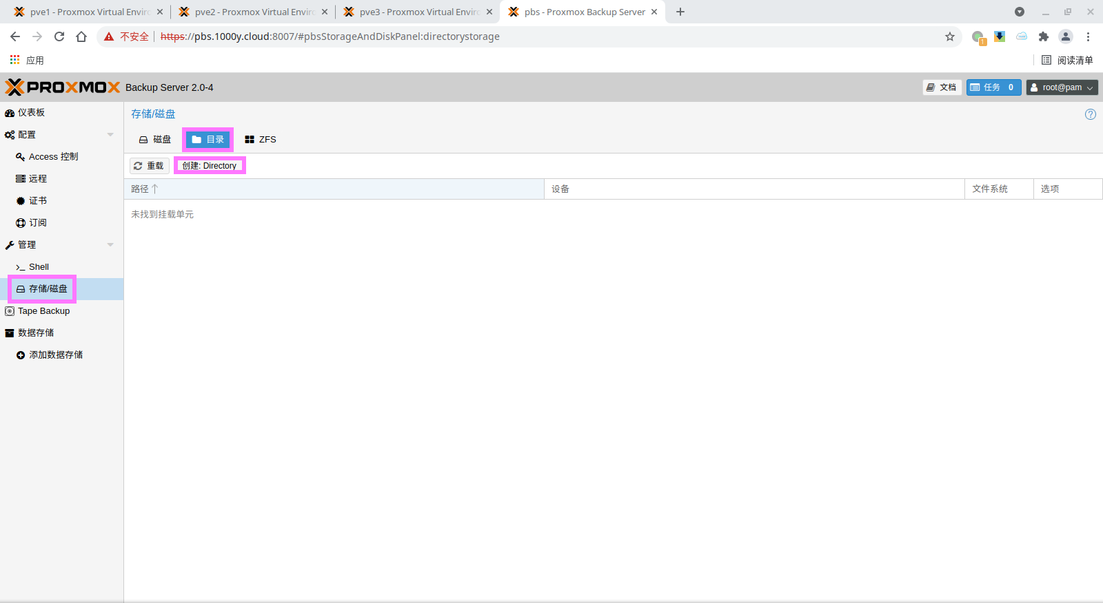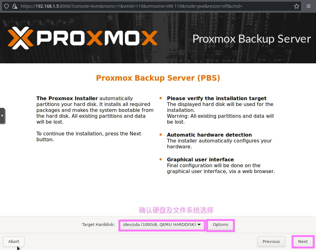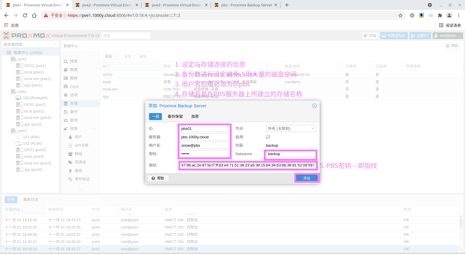 5) 登录PBS [浏览器]===>https://pbs-srv-ip:8007