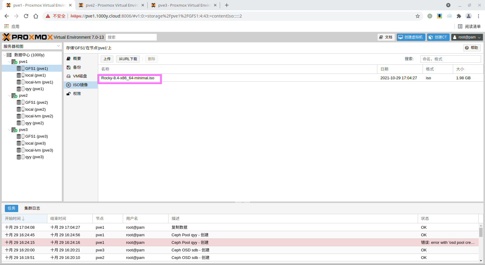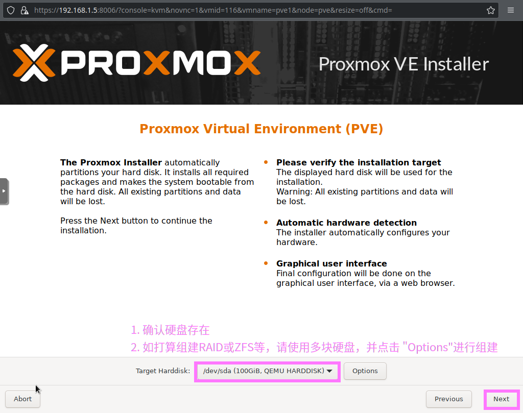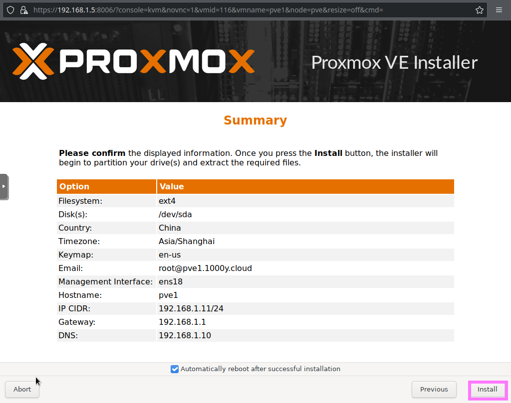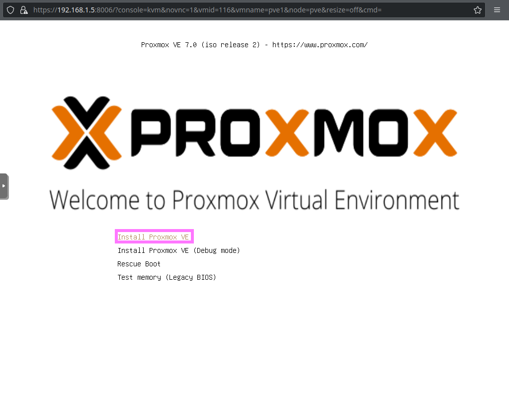 1) 下载PVE ISO [root@srv1 ~]# curl -O https://mirrors.tuna.tsinghua.edu.cn/proxmox/iso/proxmox-ve_7.0-2.iso |