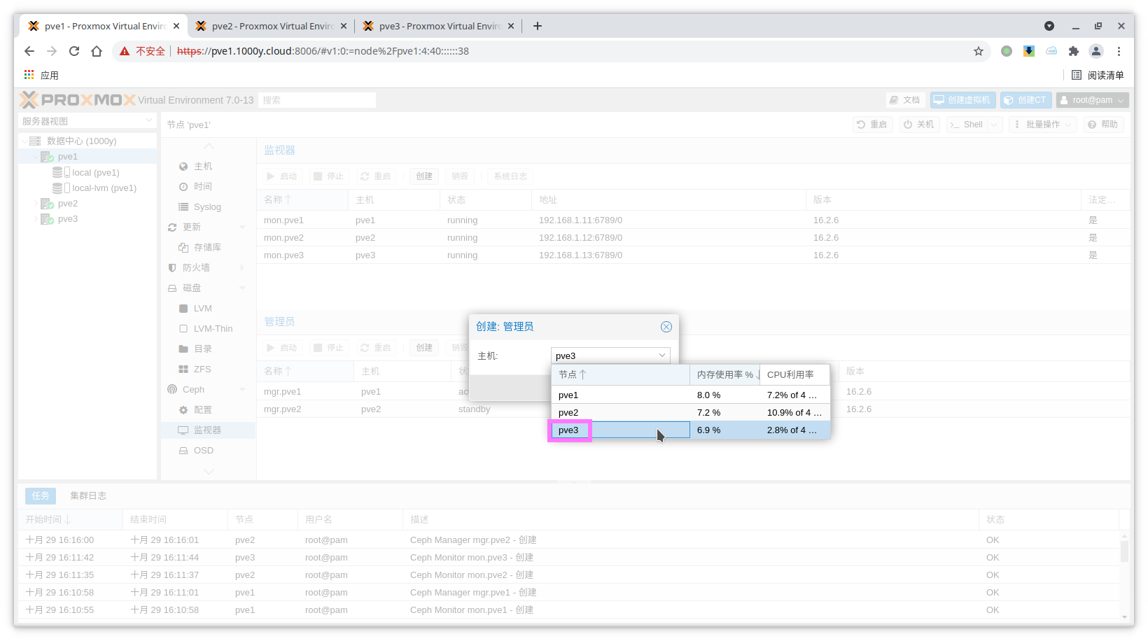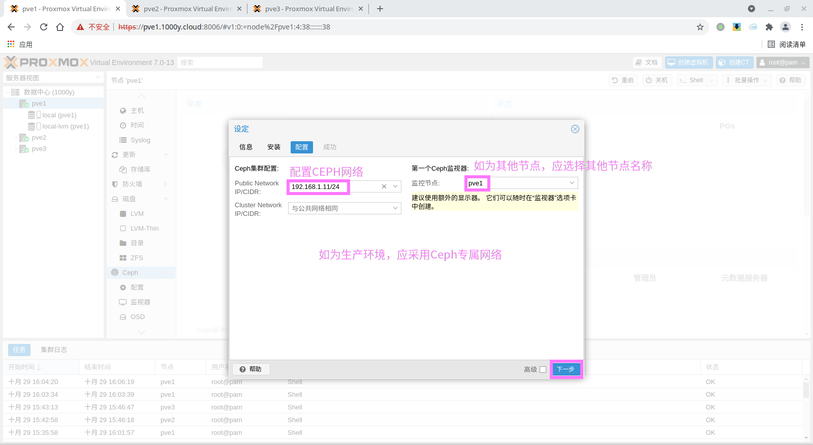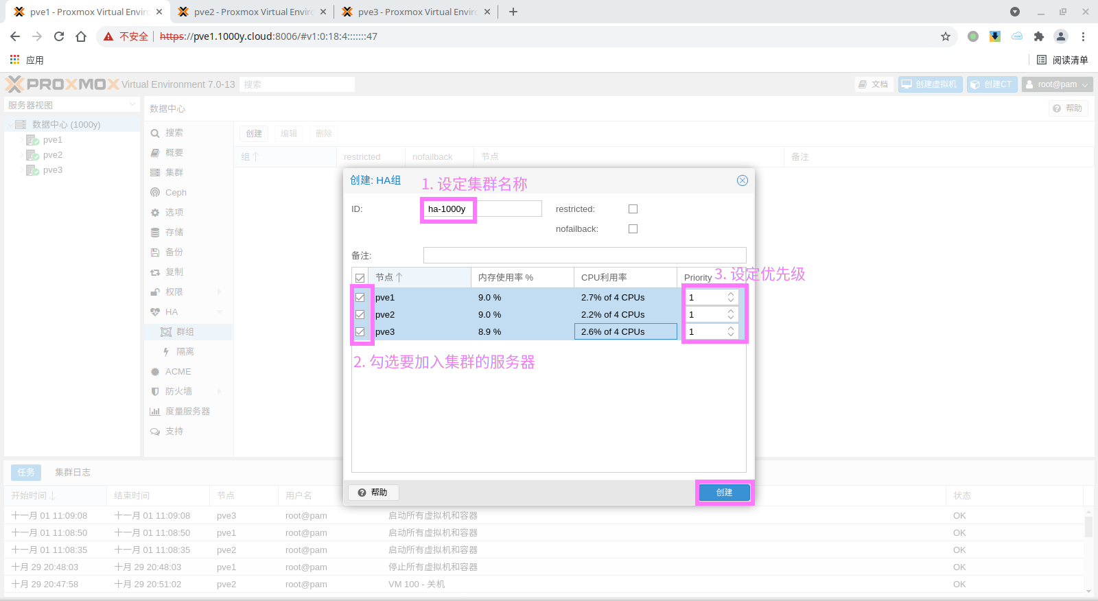 1) 准备PVE Cluster |