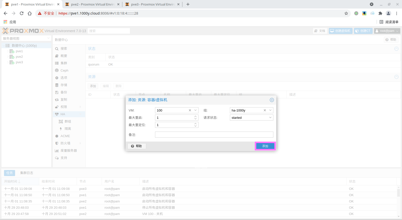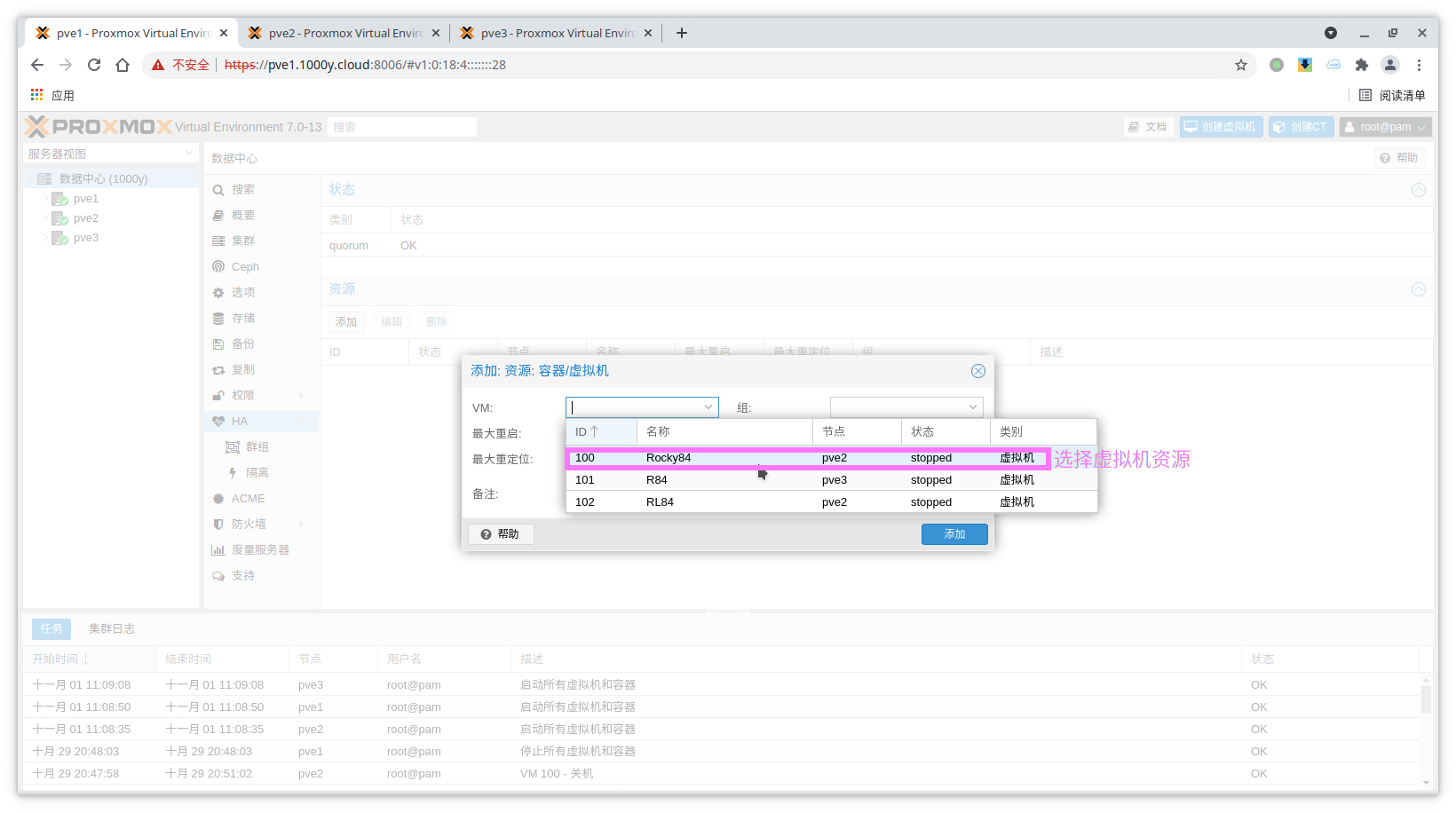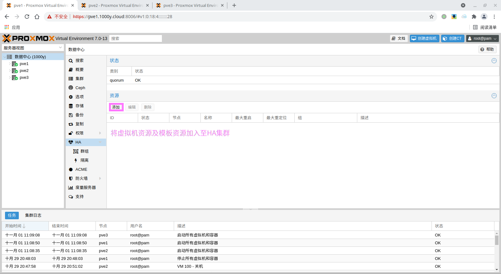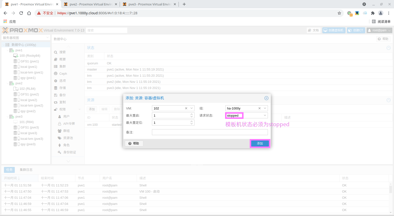 1) 准备PVE Cluster |