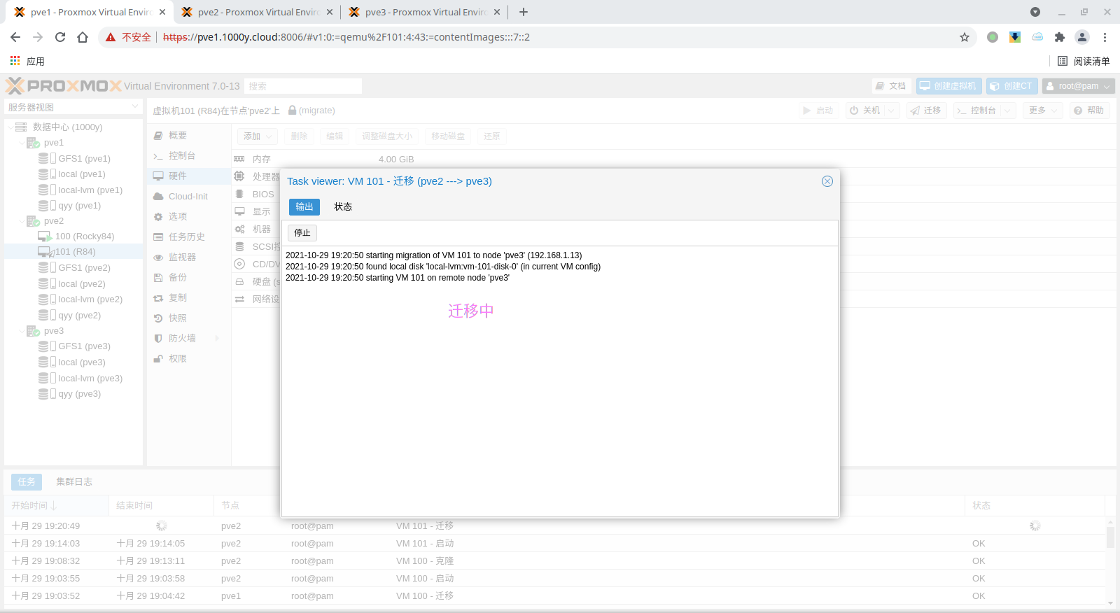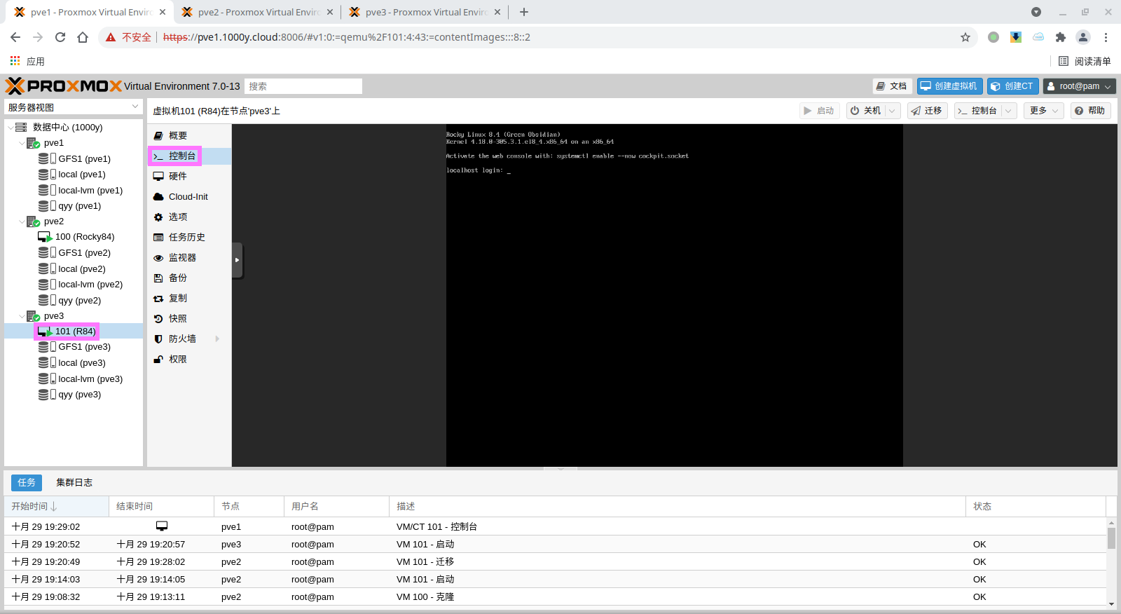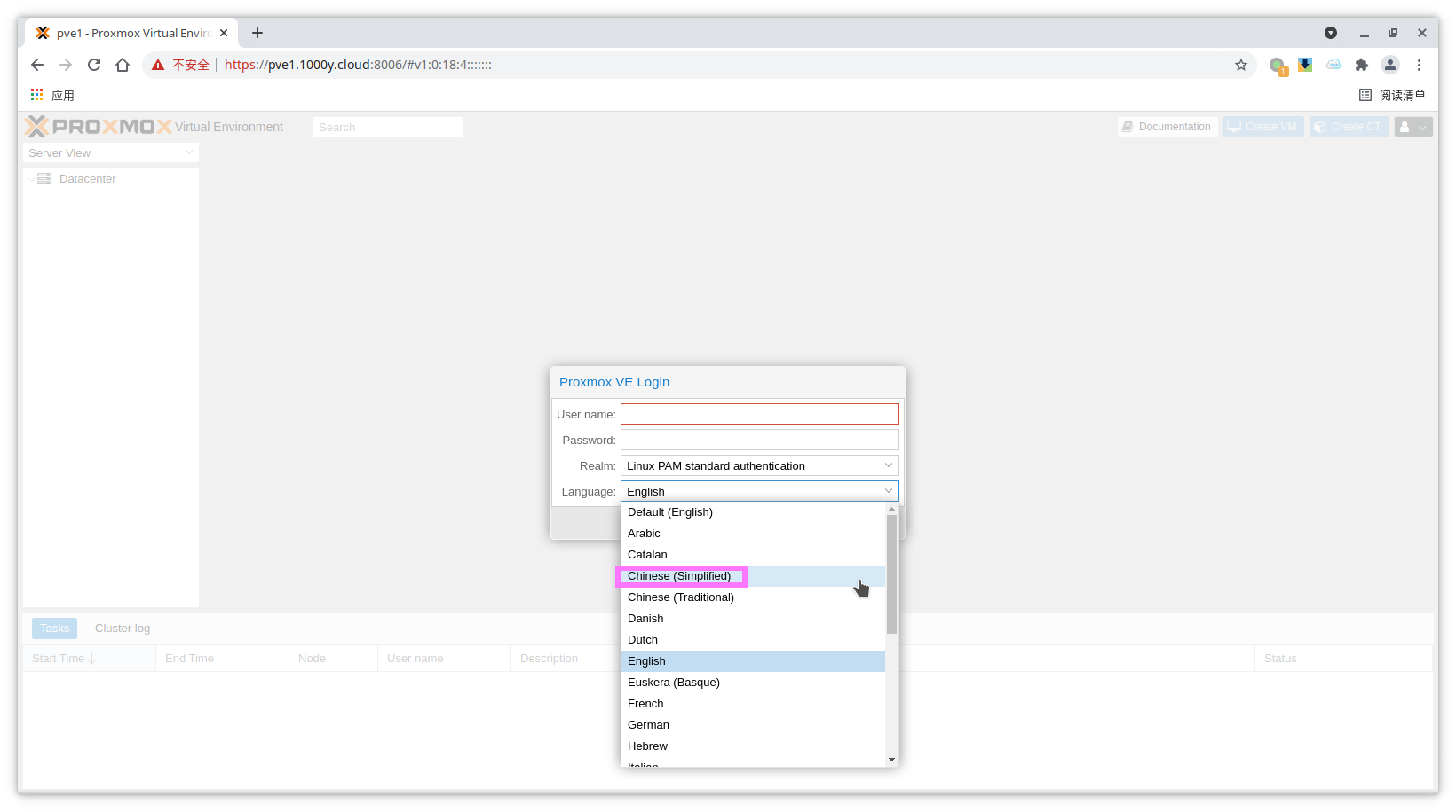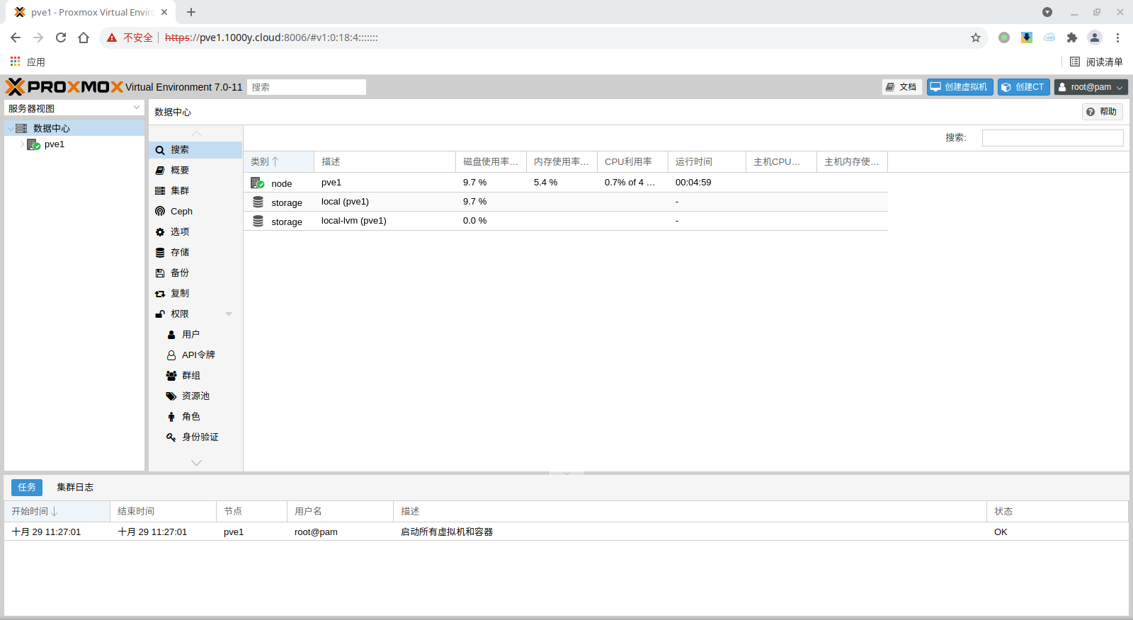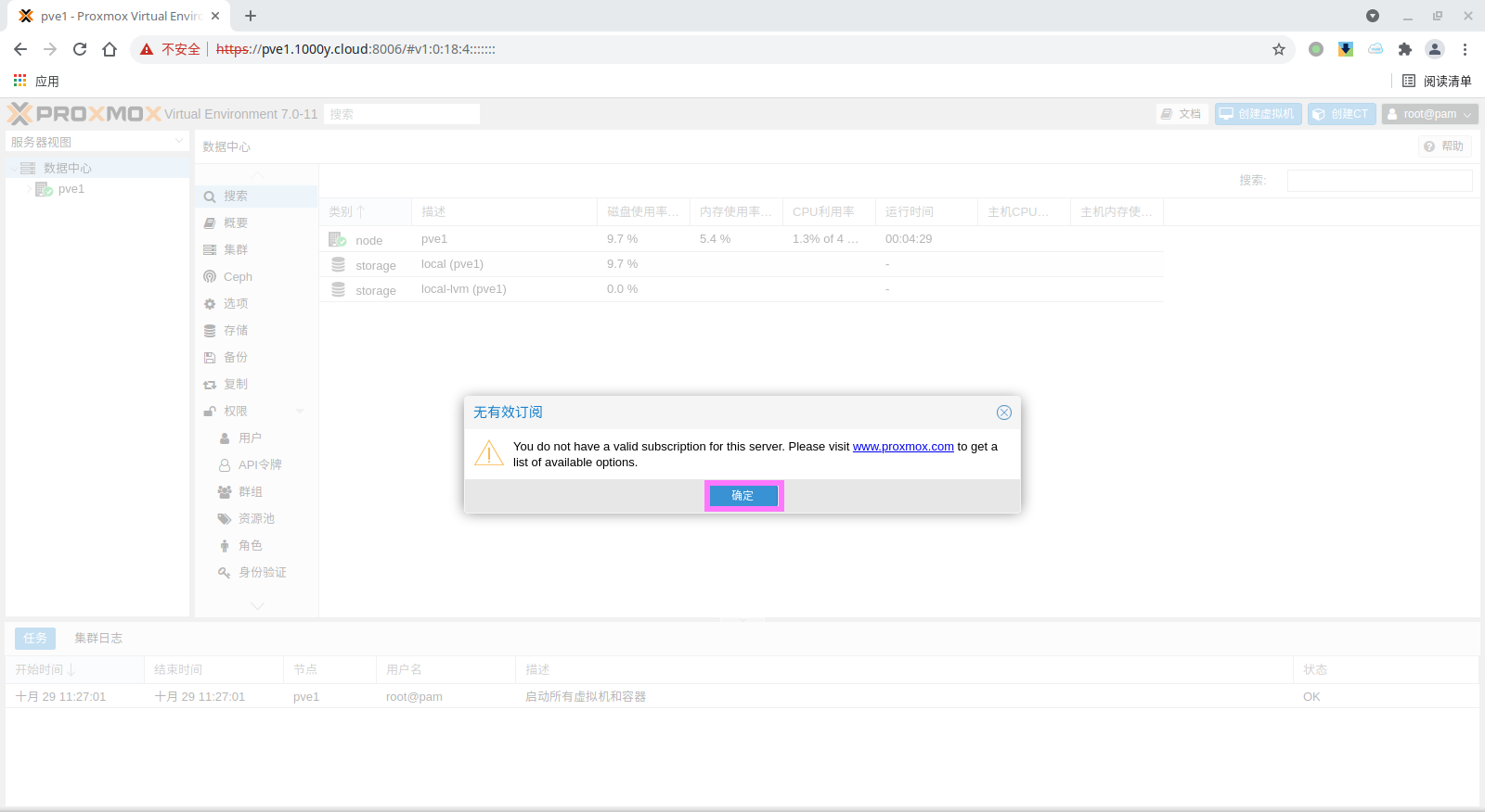 5) 访问测试 [浏览器]===>https://$pvesrv_ip:9100
