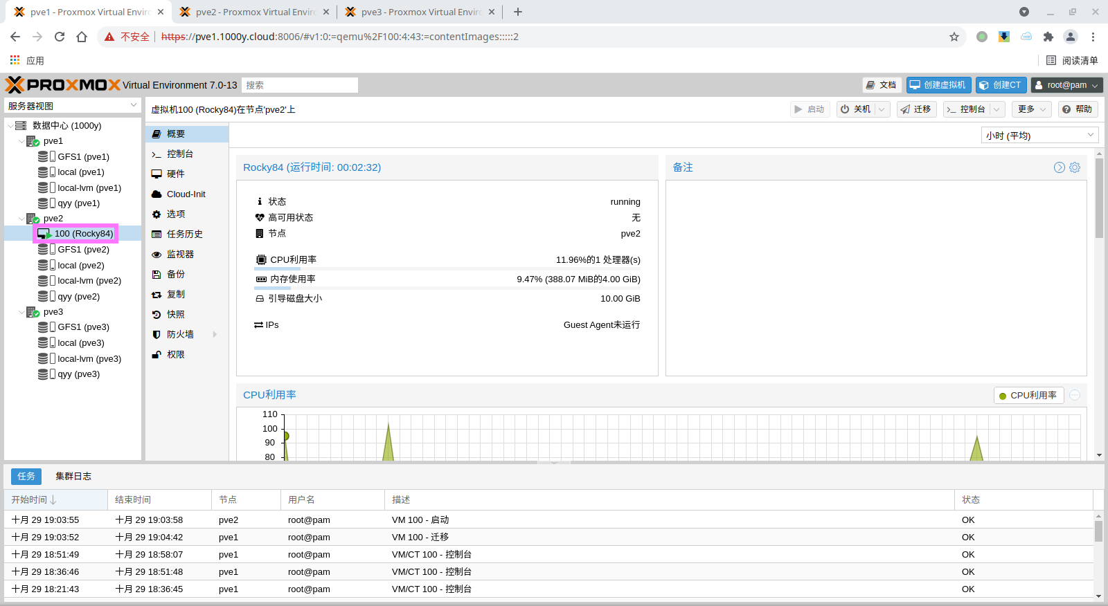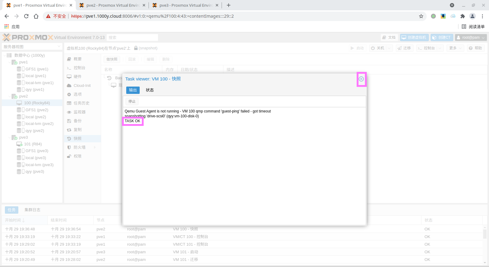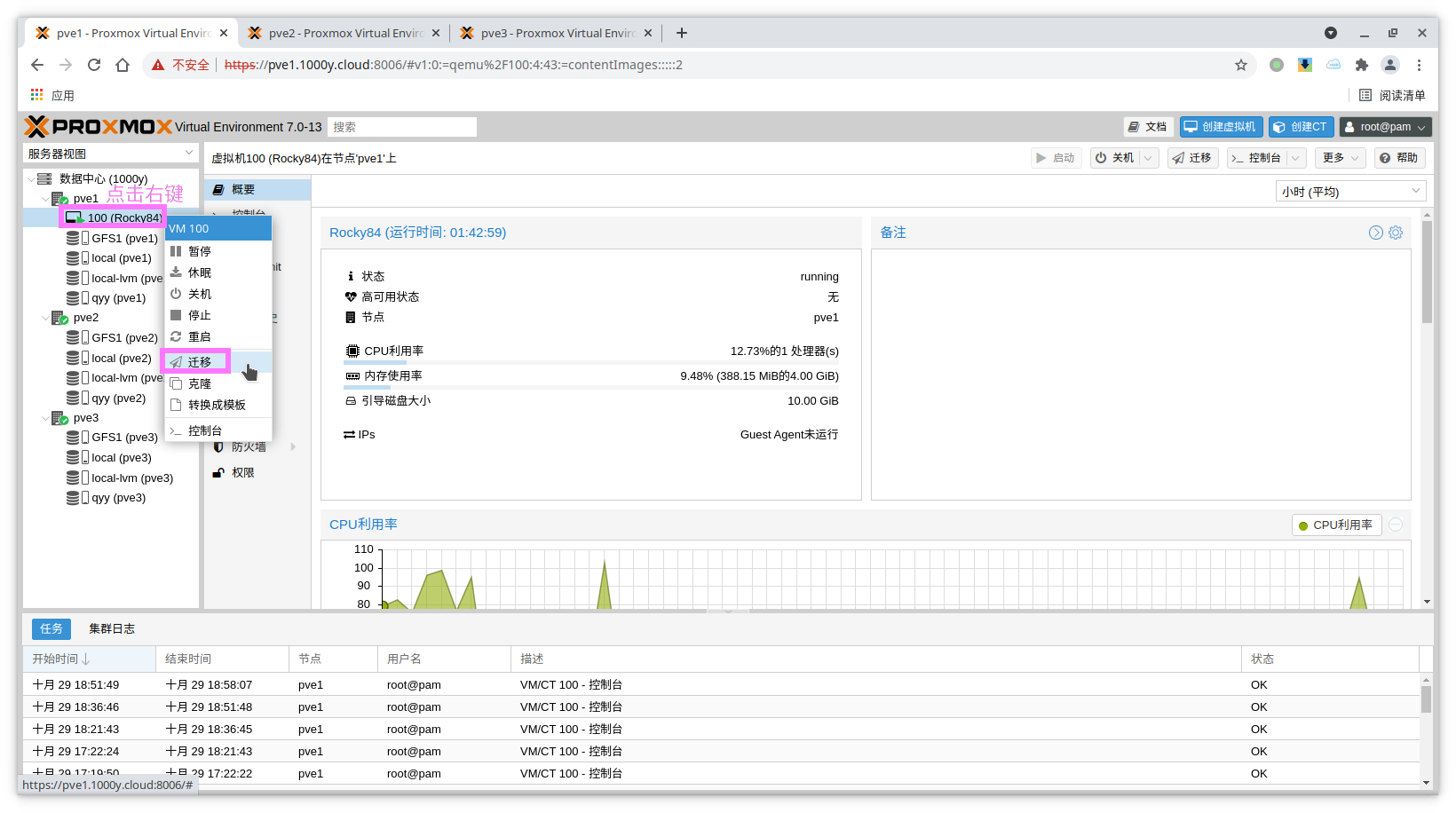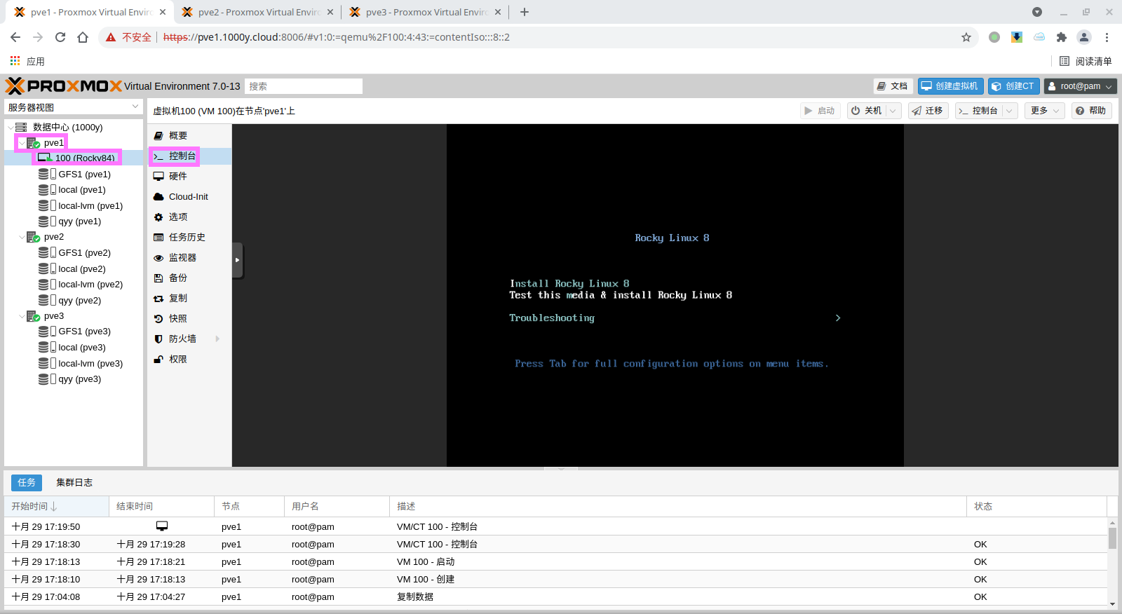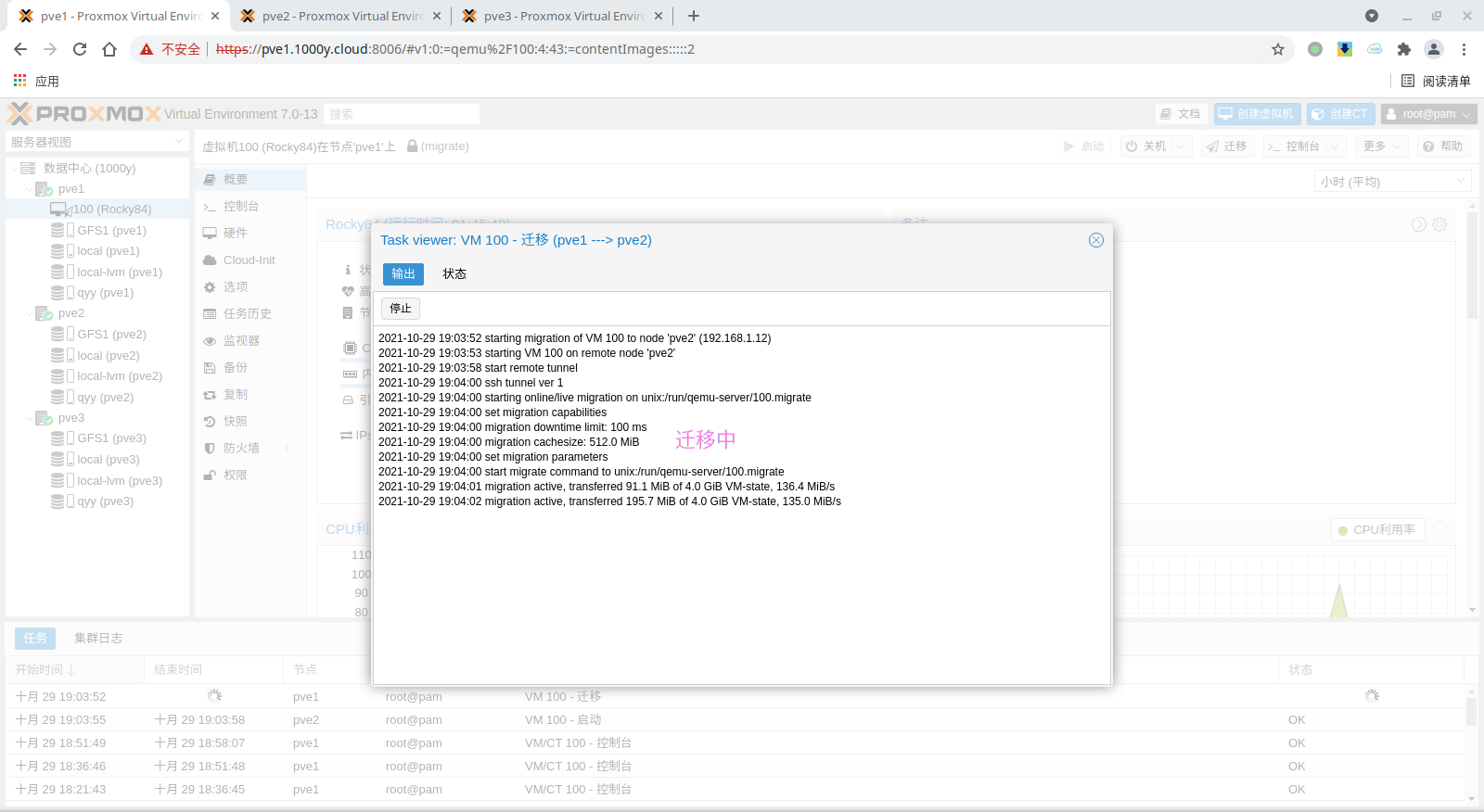 5) 访问测试 [浏览器]===>https://$pvesrv_ip:9100