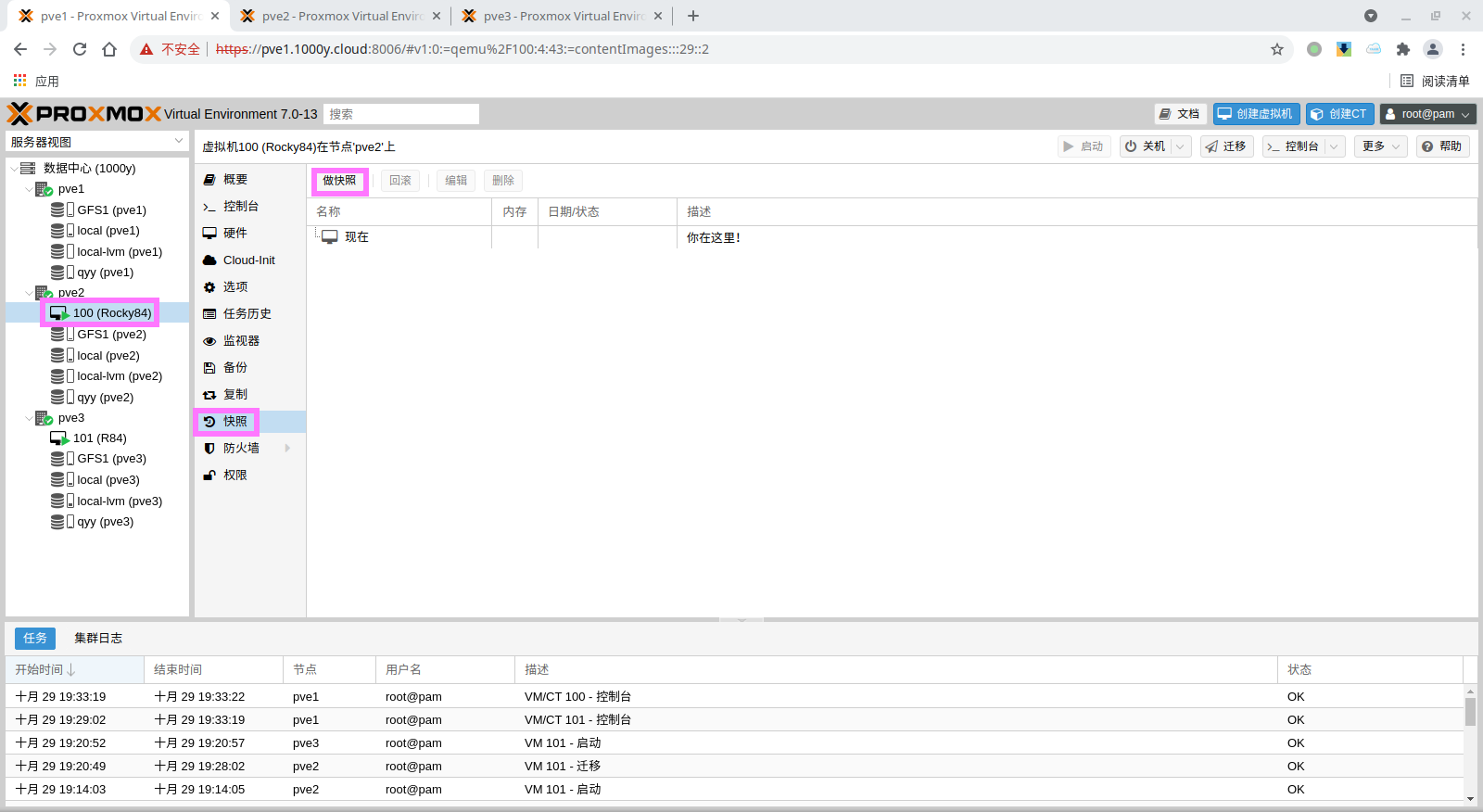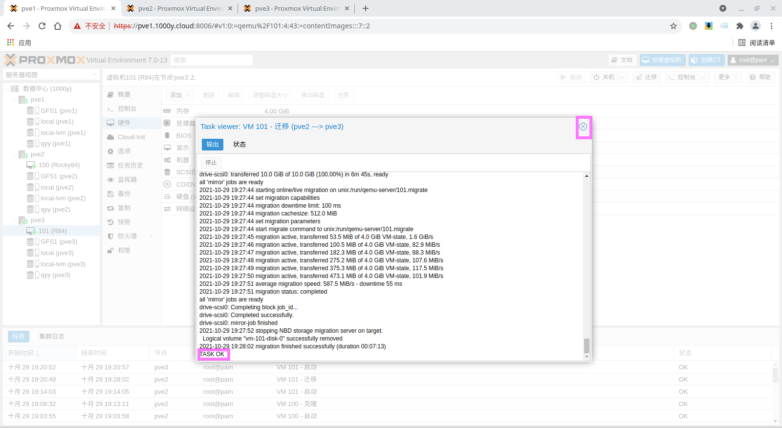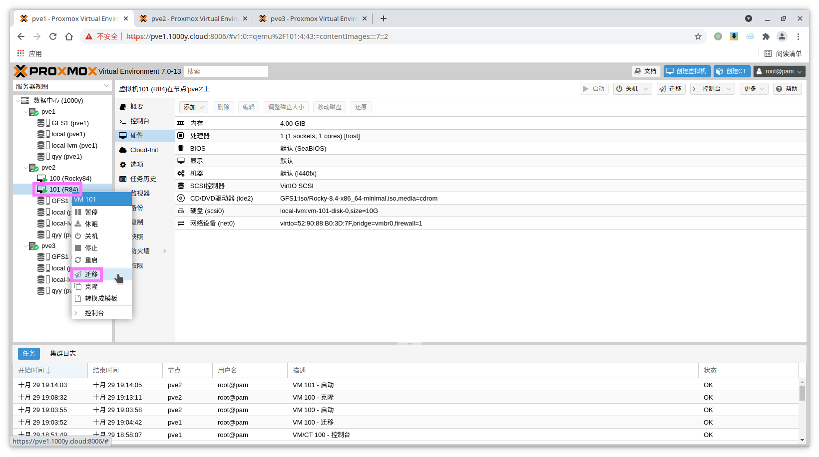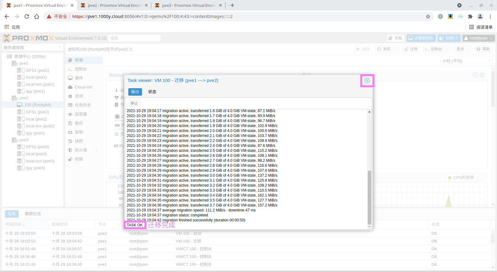5) 访问测试 [浏览器]===>https://$pvesrv_ip:9100