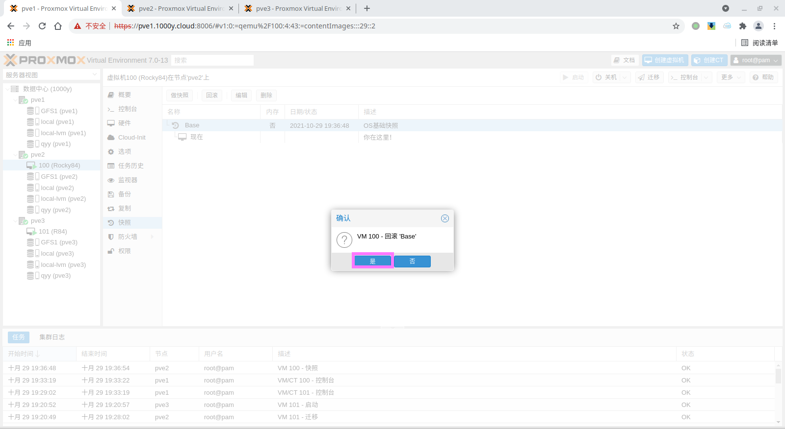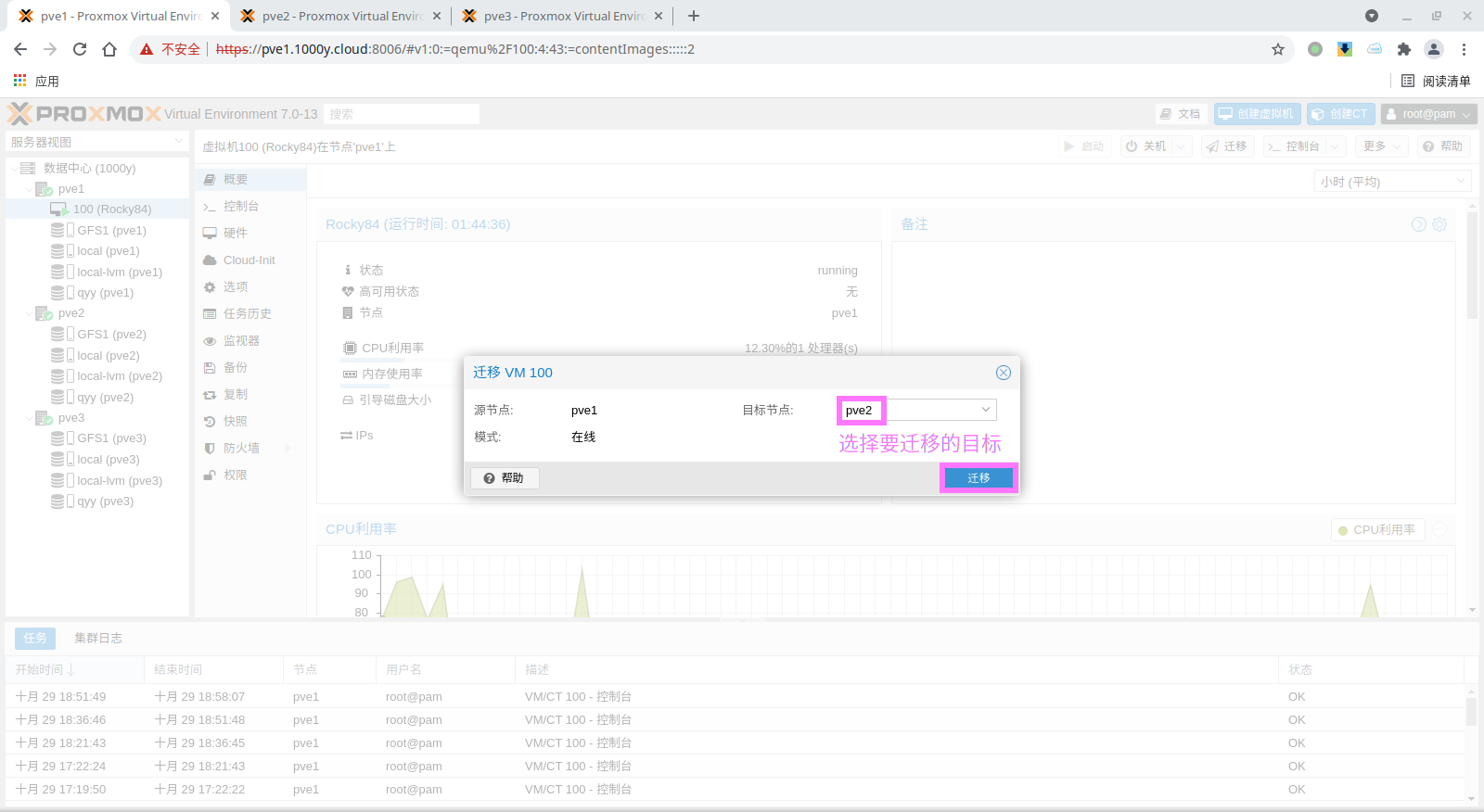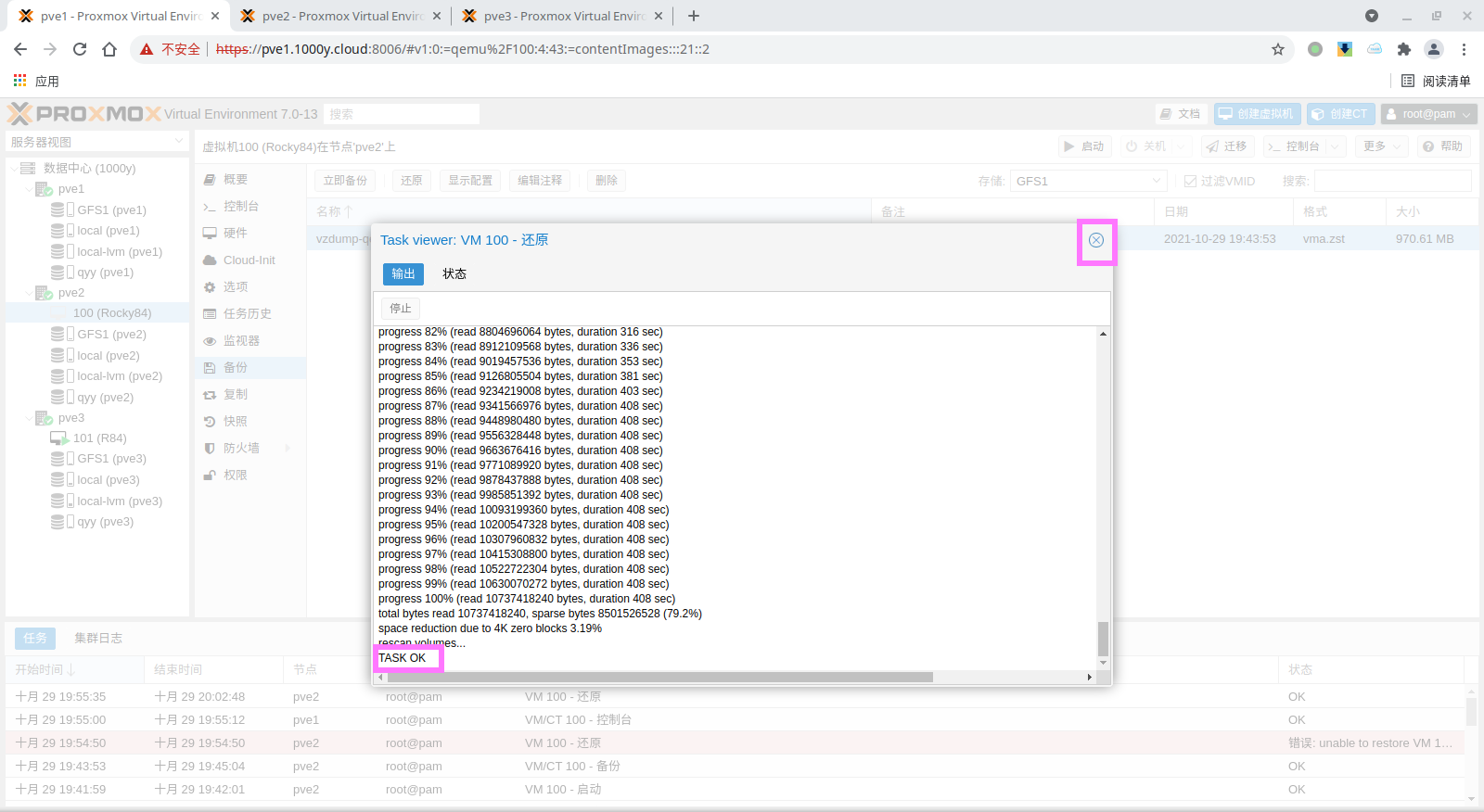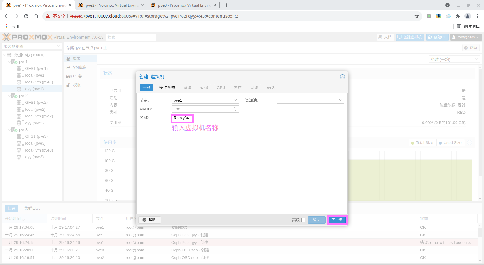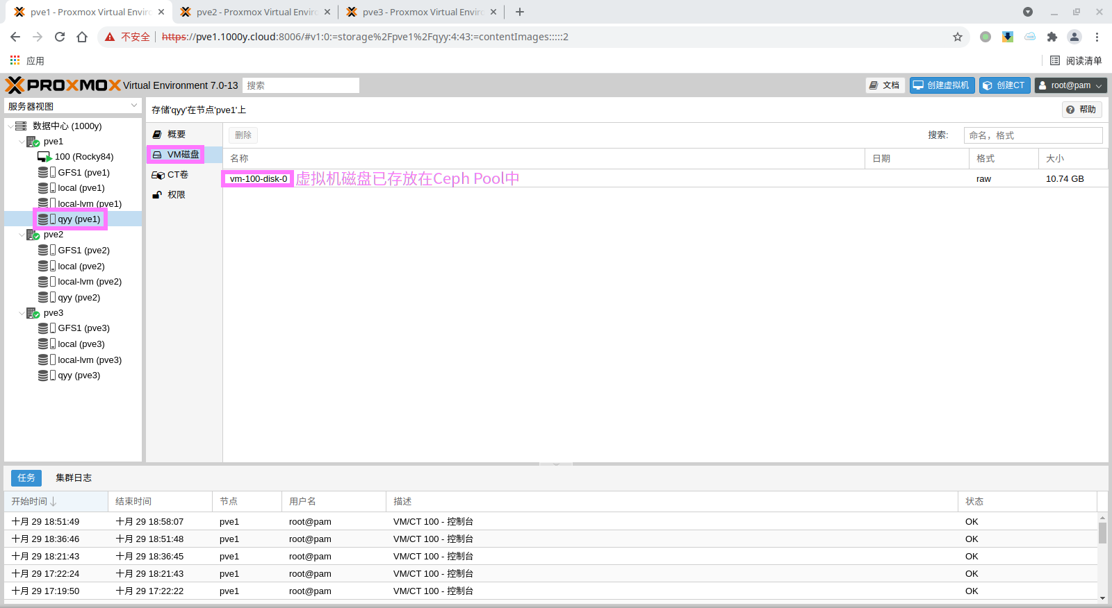 5) 访问测试 [浏览器]===>https://$pvesrv_ip:9100