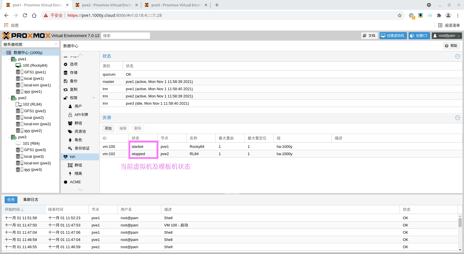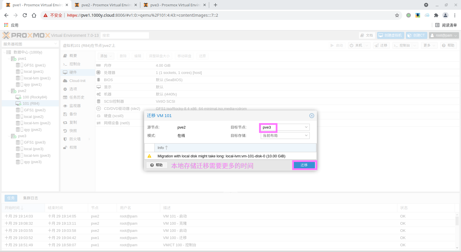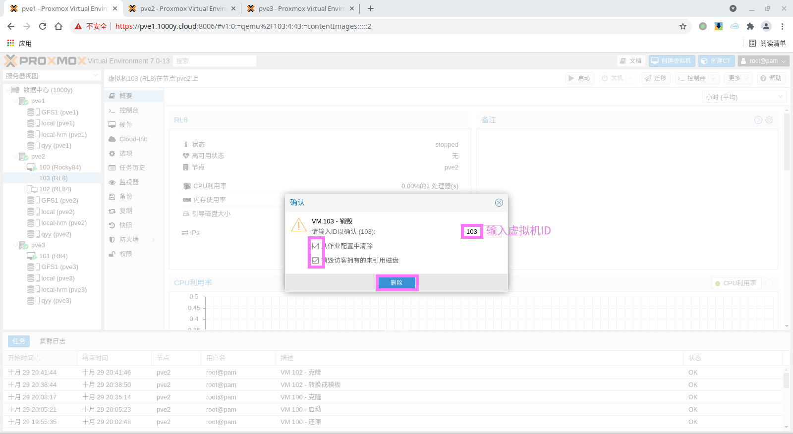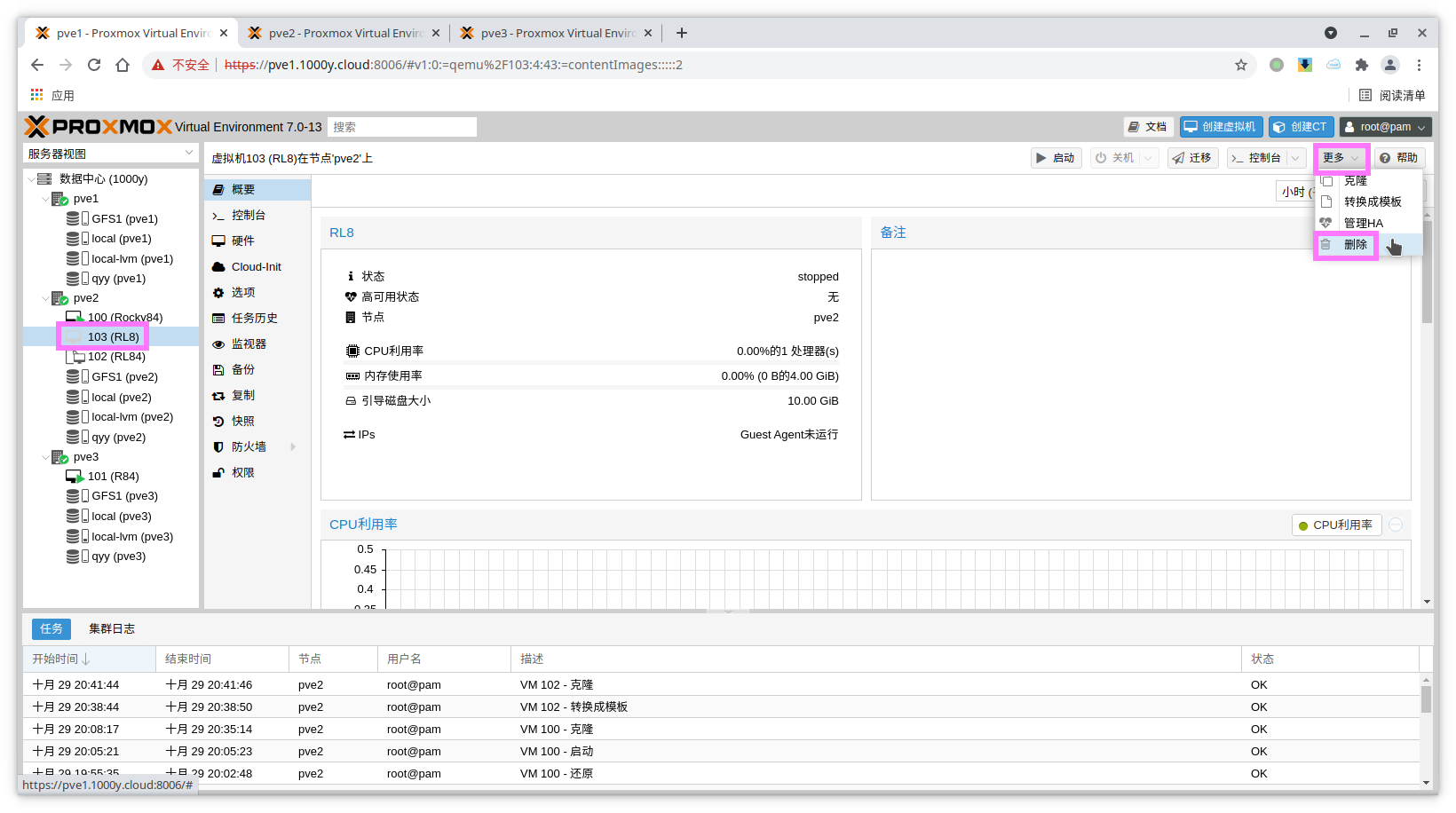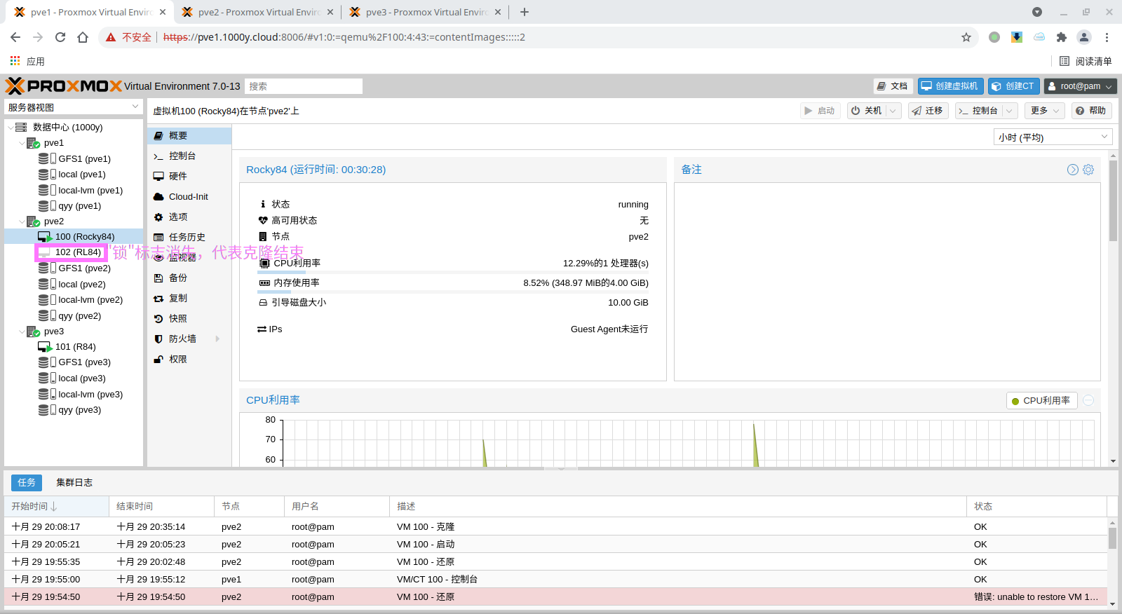 5) 访问测试 [浏览器]===>https://$pvesrv_ip:9100