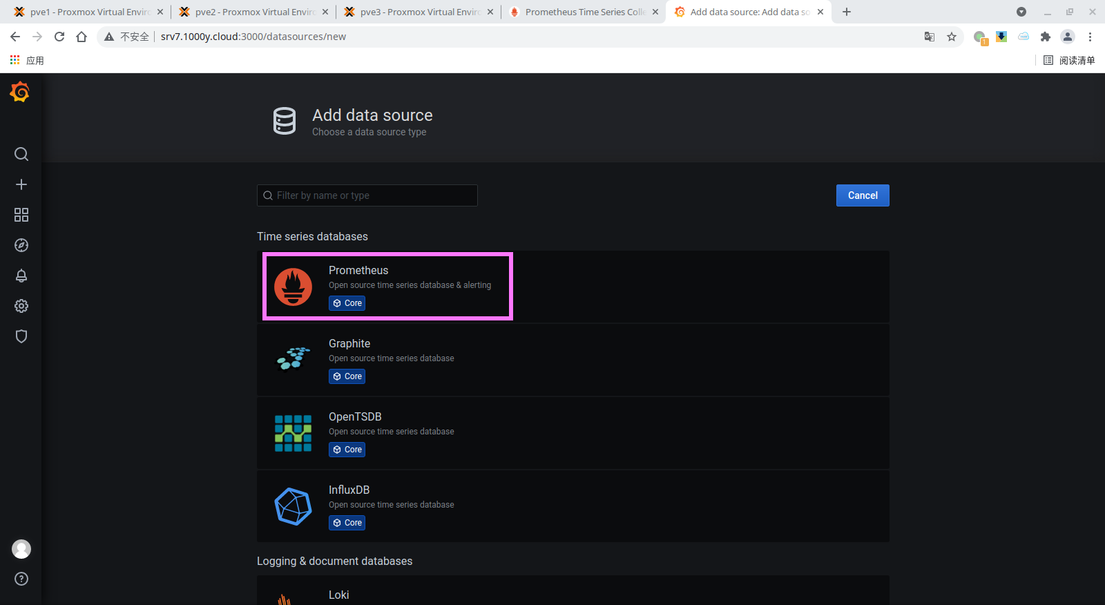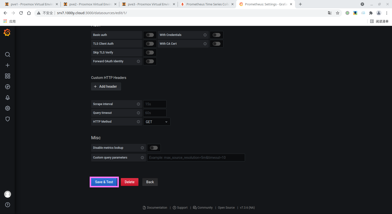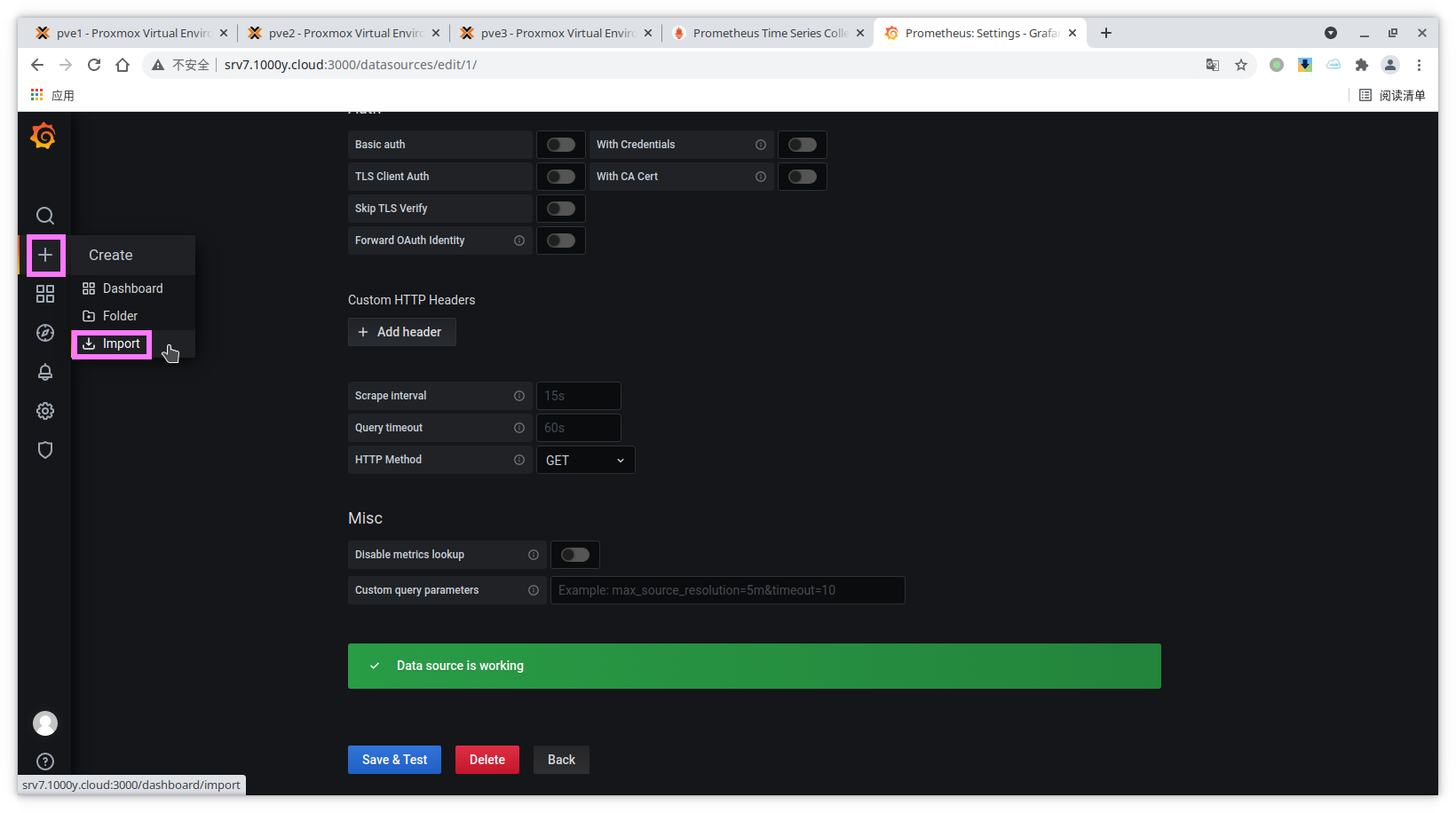 6) 在Grafana上添加Prometheus数据源
