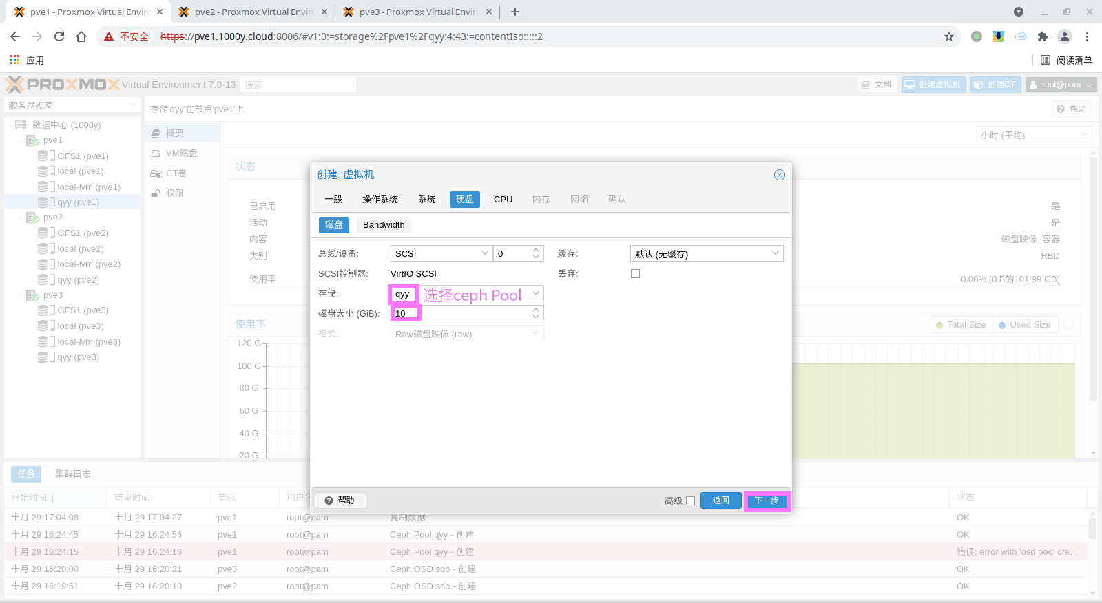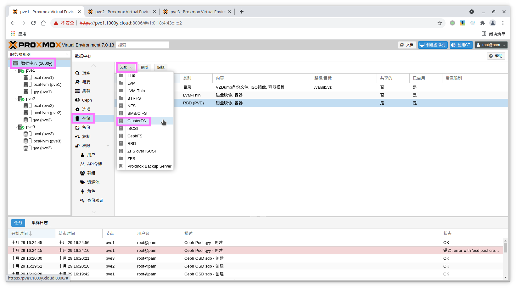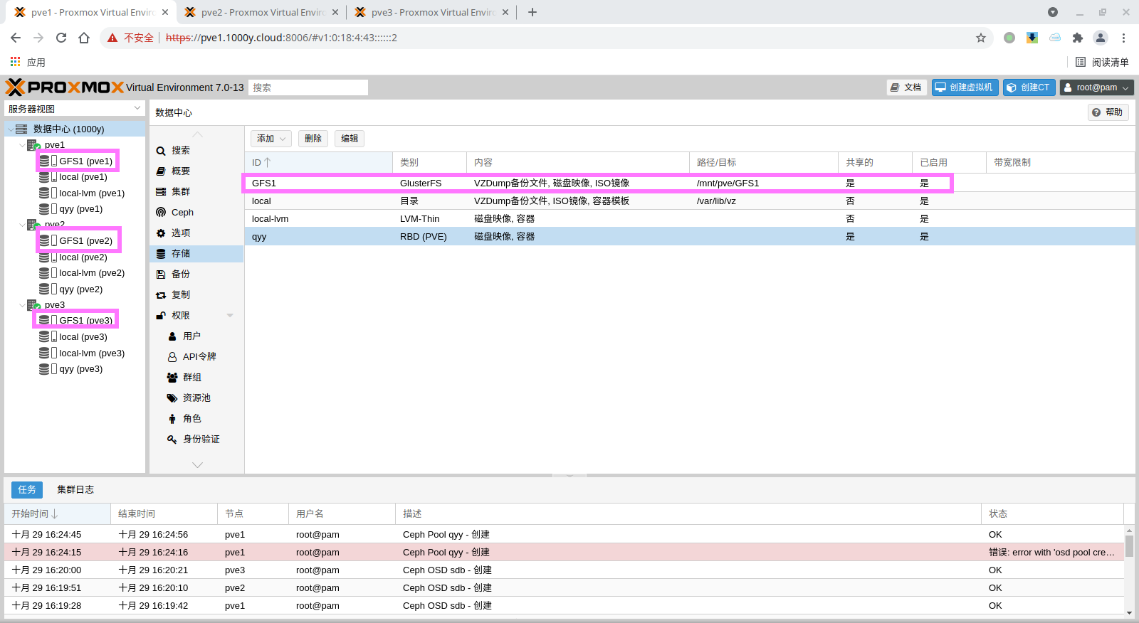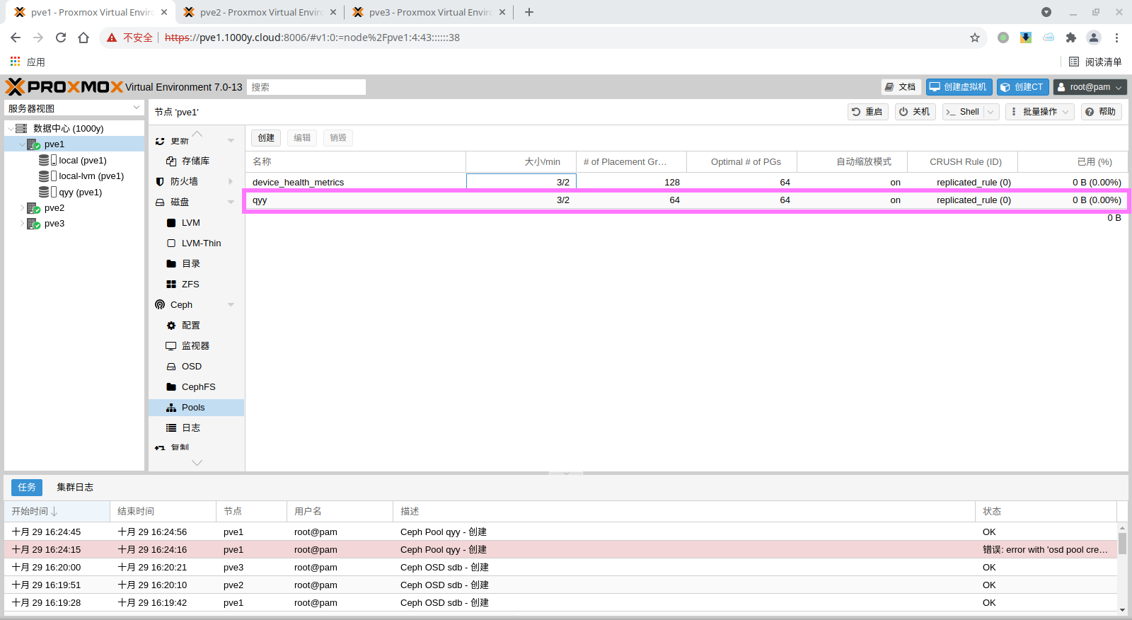 rbd: qyy content rootdir,images krbd 0 pool qyy