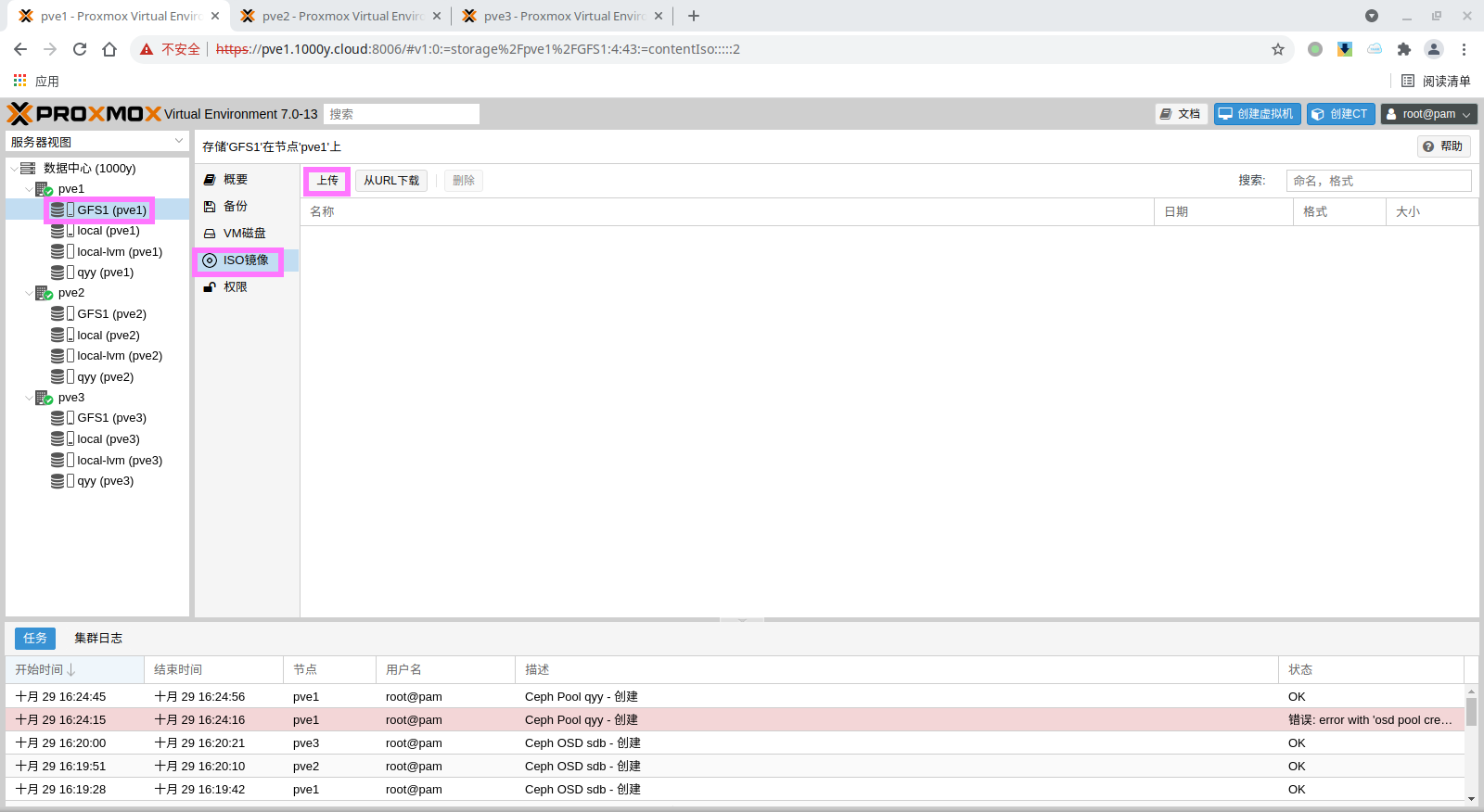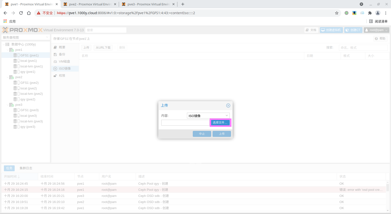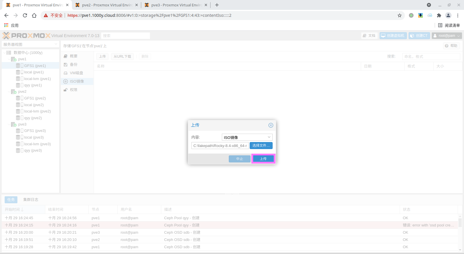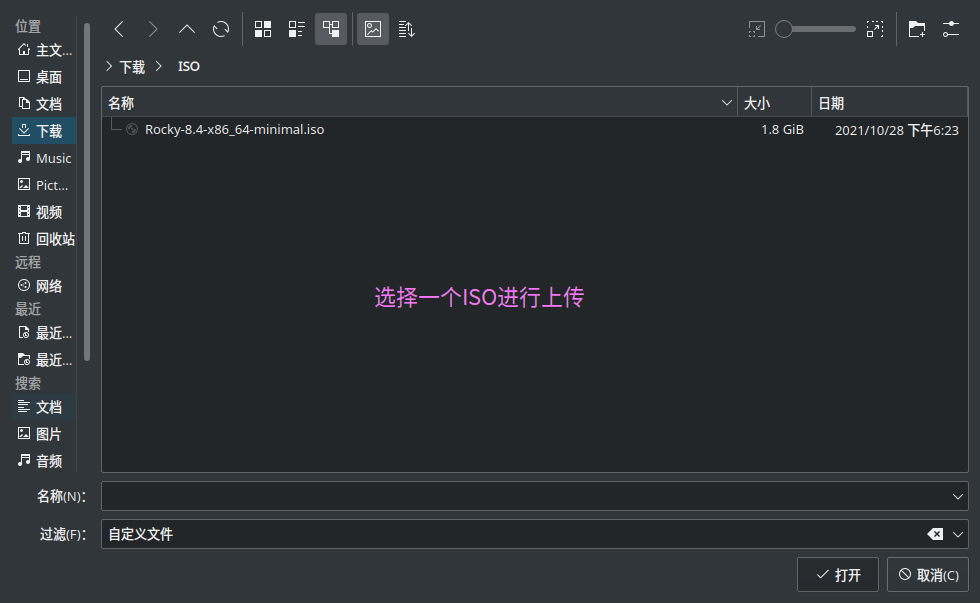 1) 上传ISO镜像 (1) 使用WEB UI上传ISO |